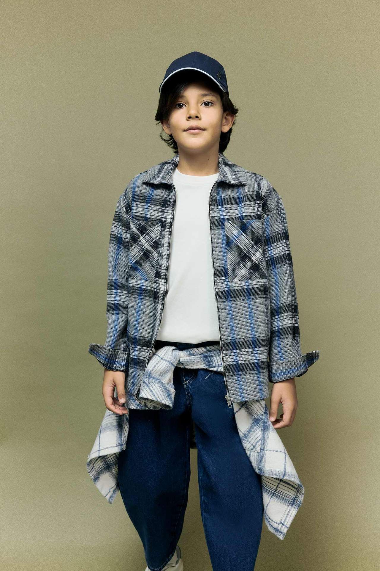 Erkek Çocuk Polo Yaka Ekose Desenli Flanel Ceket