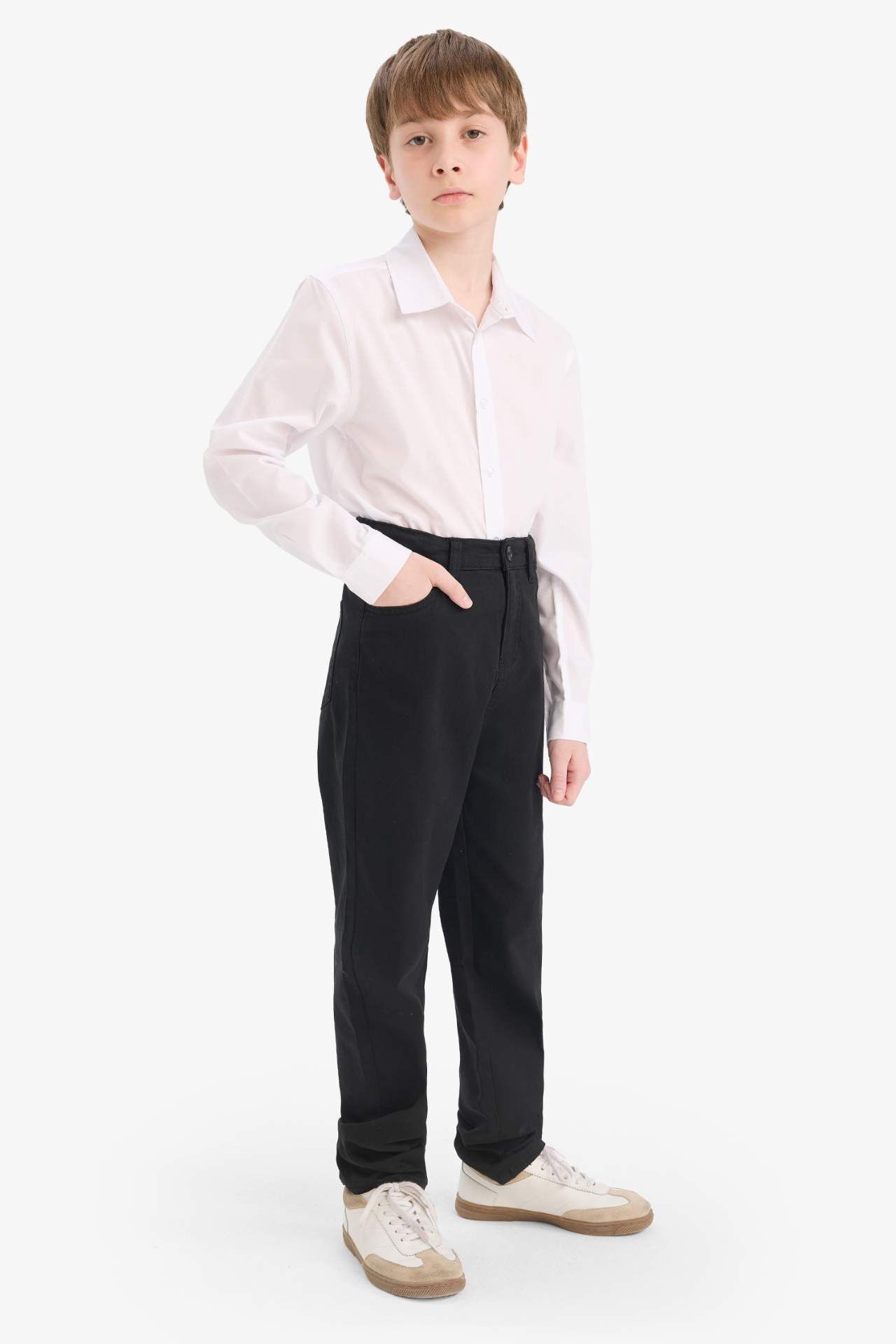 DeFacto Erkek Çocuk Polo Yaka Poplin Uzun Kollu Gömlek