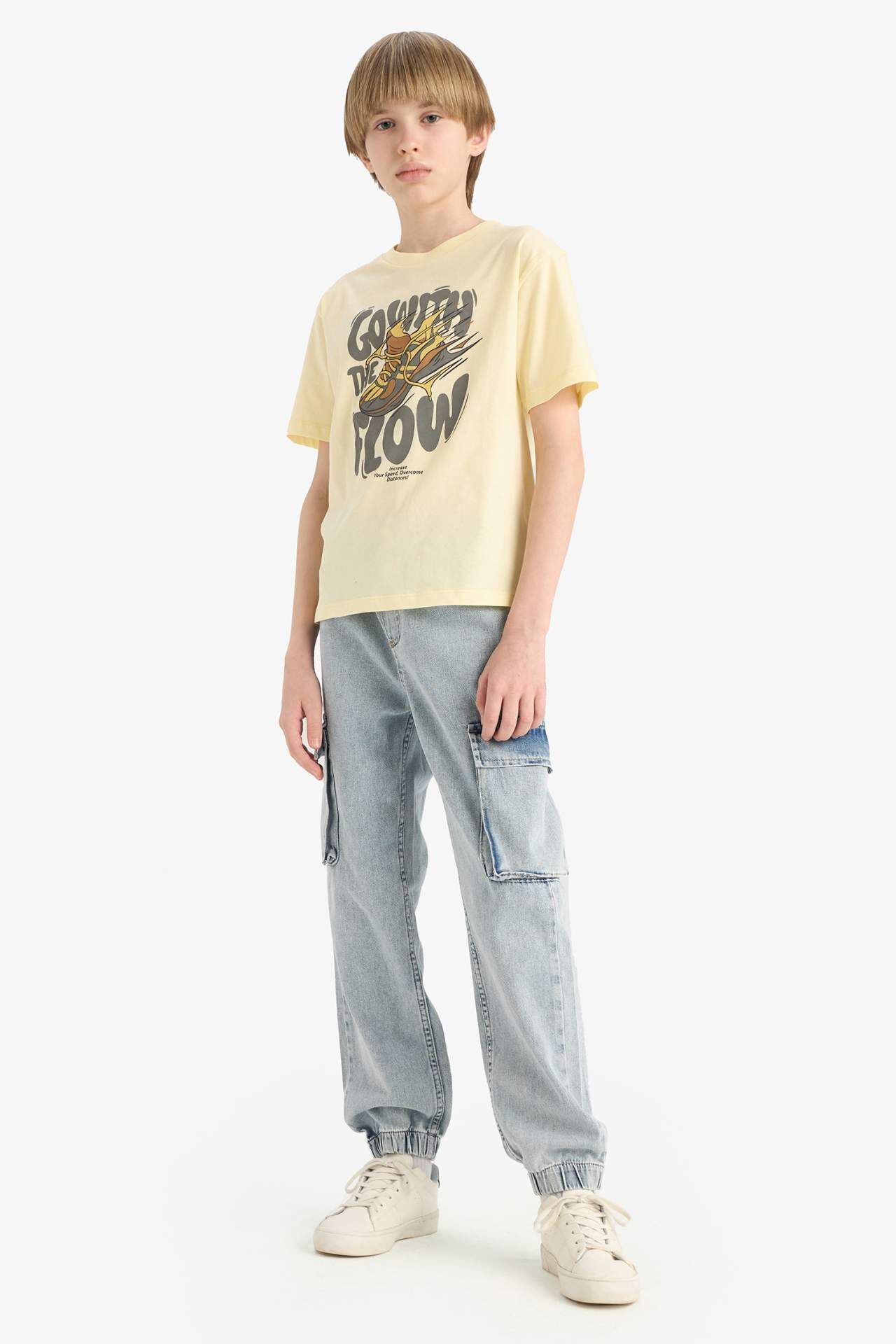 DeFacto Erkek Çocuk Regular Fit Bisiklet Yaka Baskılı Kısa Kollu Tişört E6312A825HSYL487
