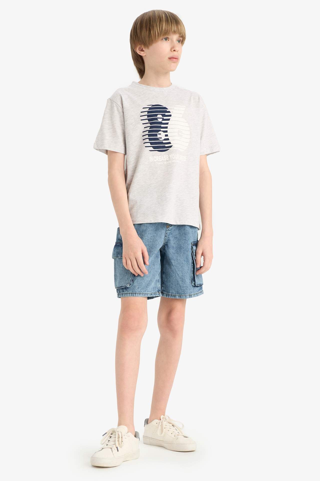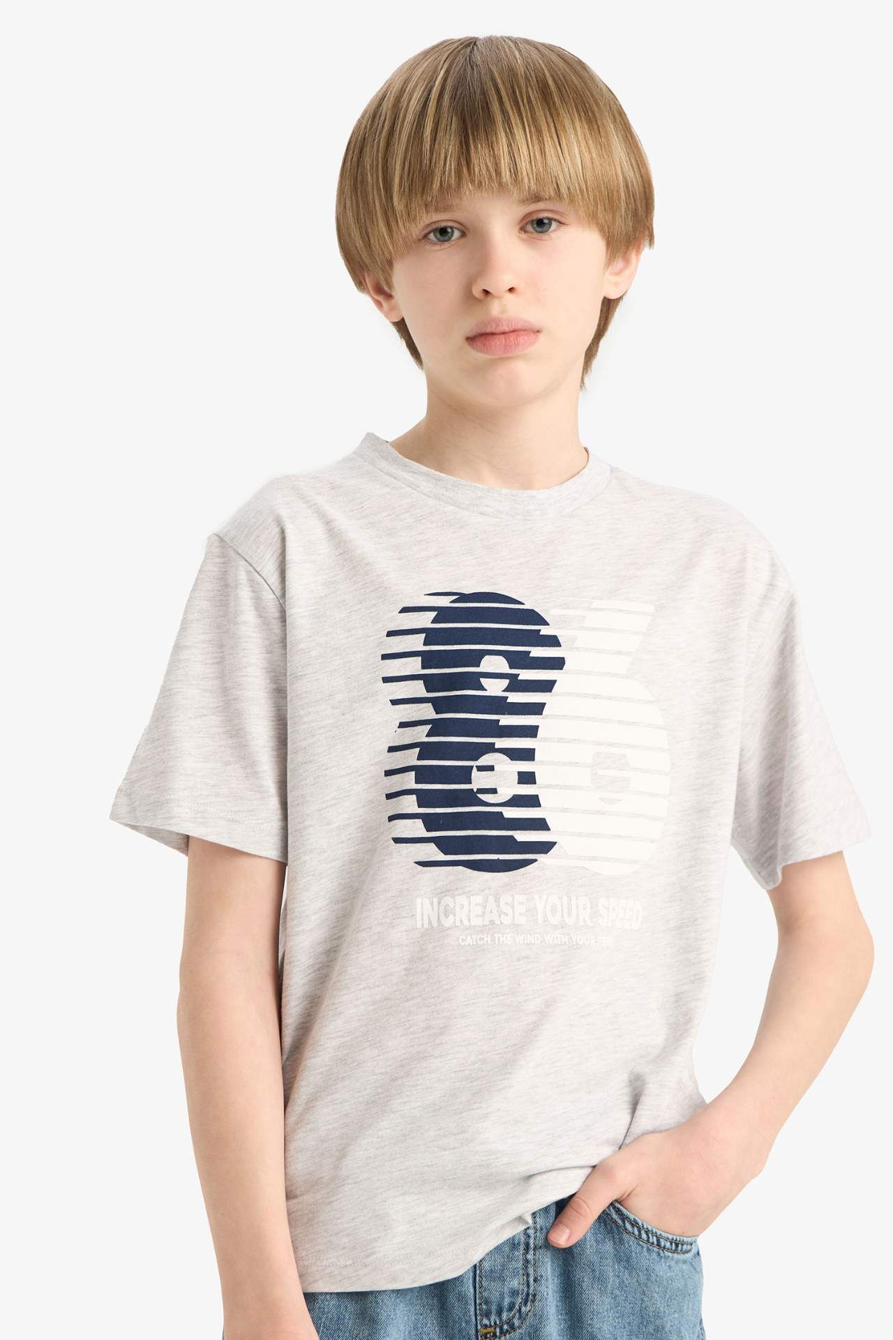 DeFacto Erkek Çocuk Regular Fit Bisiklet Yaka Baskılı Kısa Kollu Tişört E6313A825HSGR400