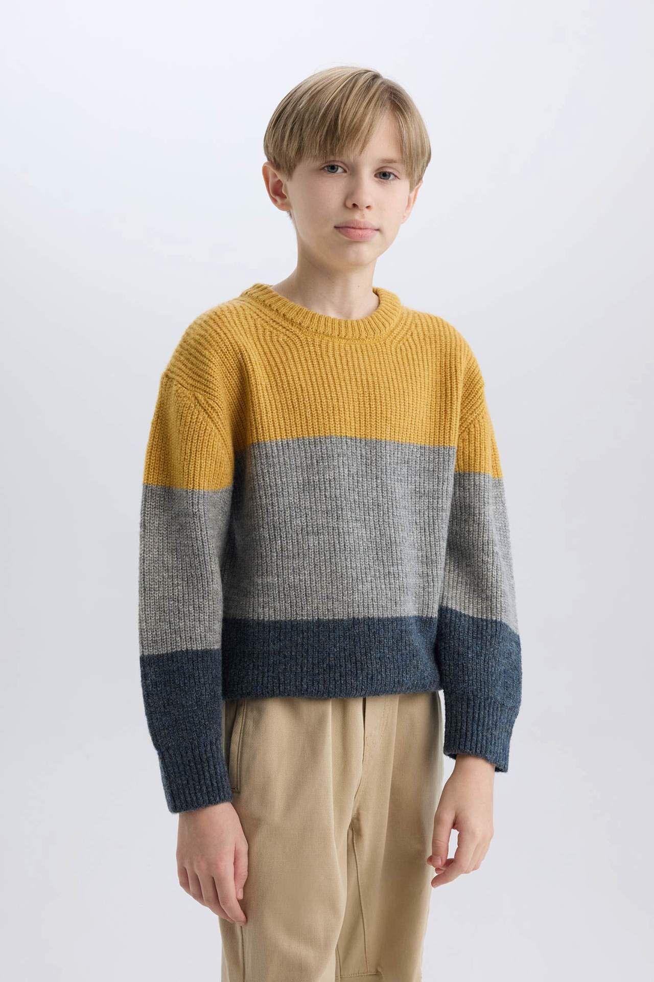 DeFacto Erkek Çocuk Regular Fit Bisiklet Yaka Renk Bloklu Triko Kazak