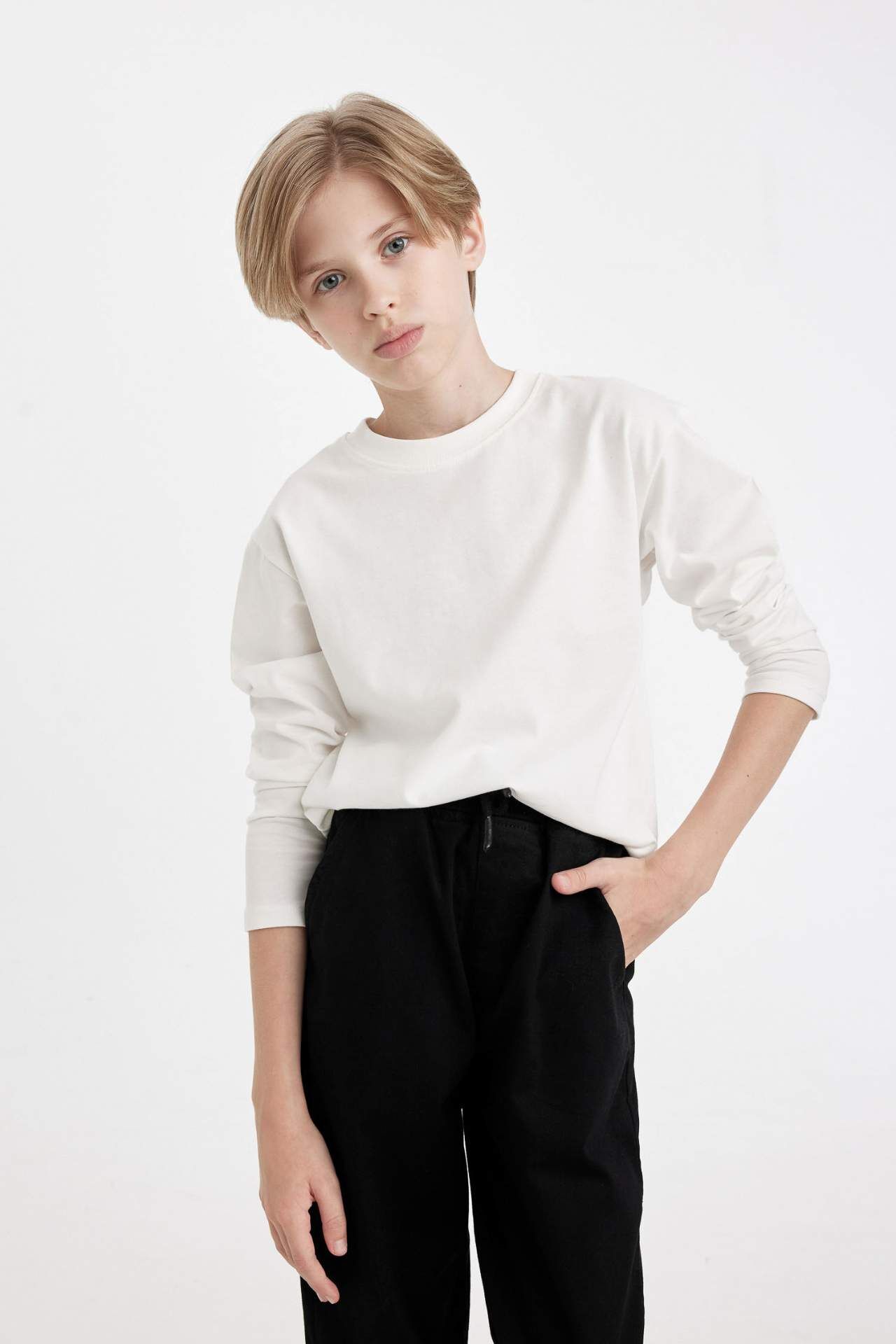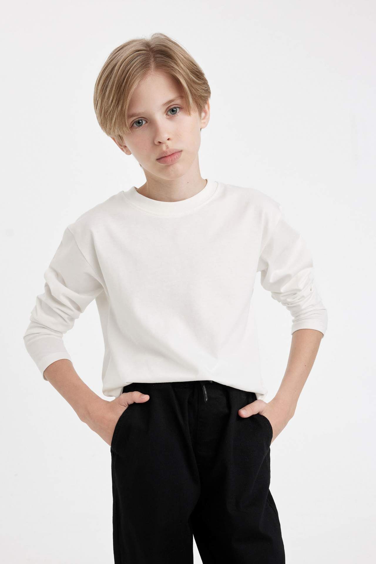 DeFacto Erkek Çocuk Regular Fit Bisiklet Yaka Uzun Kollu Tişört D8552A8NSWT32