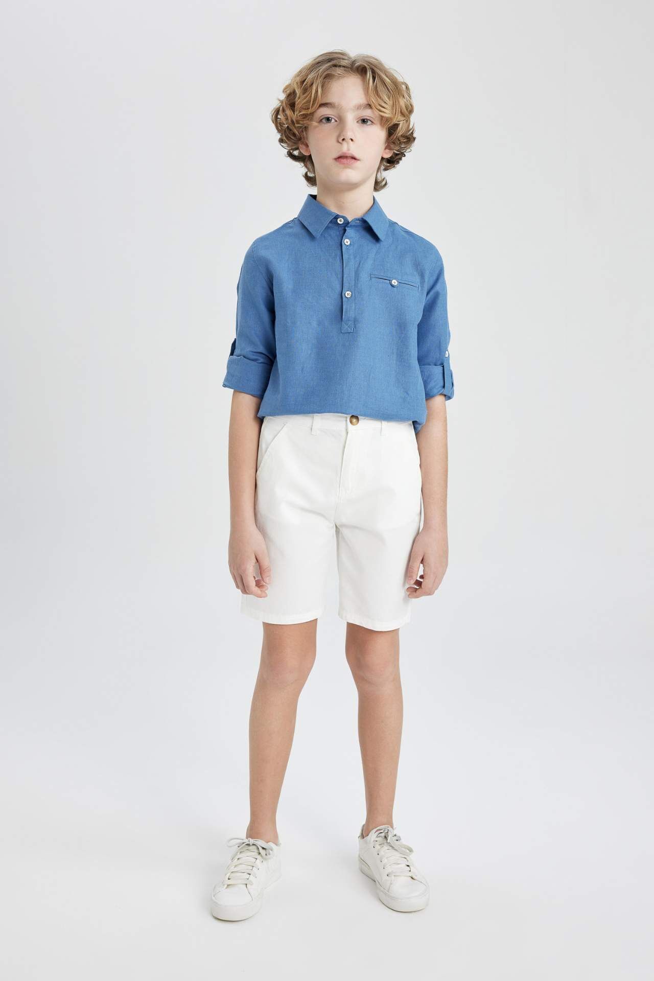 Erkek Çocuk Cepli Basic Düz Gabardin Şort, şıklığı ve rahatlığı bir araya getiriyor. Dayanıklı gabardin kumaşı ve pratik cepleriyle yaz aylarında rahatça kullanılabilecek mükemmel bir seçim. Pamuk 97%,Elastan 3%,Pamuk 97%,Elastan 3% Manken Bedeni: Göğüs: 0 Boy: 1,37 Basen: 0 Bel: 0