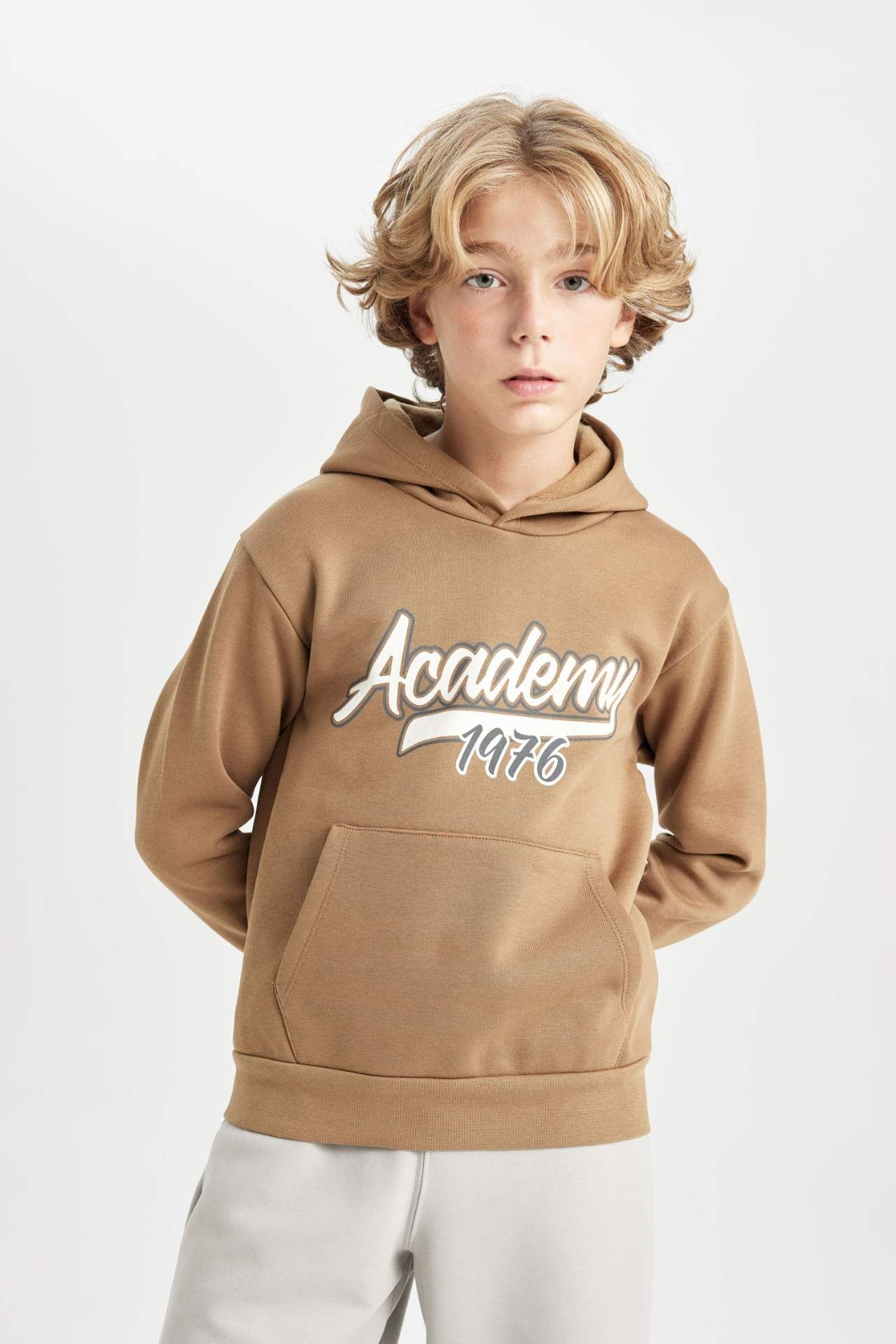 DeFacto Erkek Çocuk Regular Fit Kapüşonlu Baskılı Kalın Sweatshirt Kumaşı Sweatshirt C9806A824WNBN315