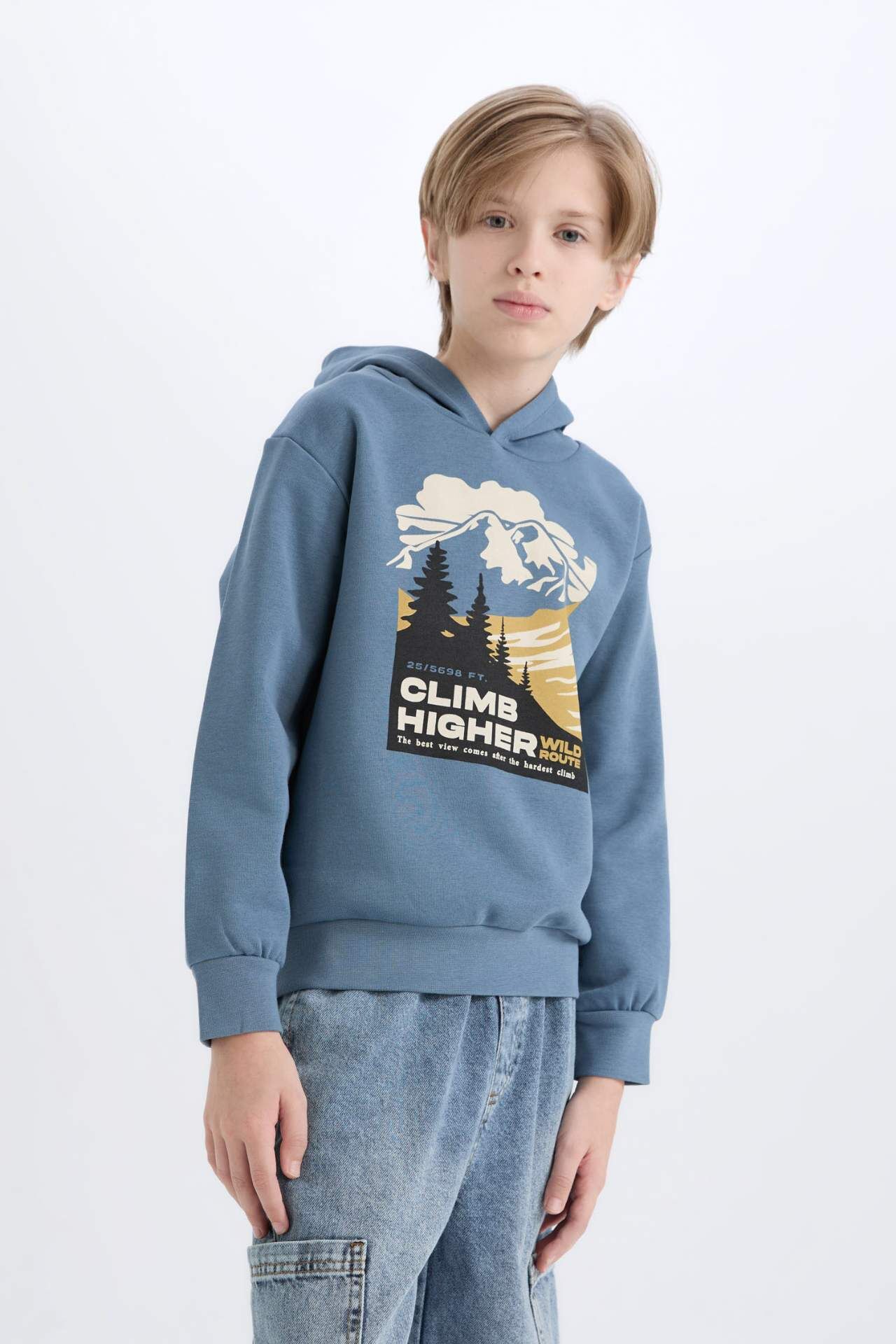 DeFacto Erkek Çocuk Regular Fit Kapüşonlu Baskılı Sweatshirt D6226A824CWIN13