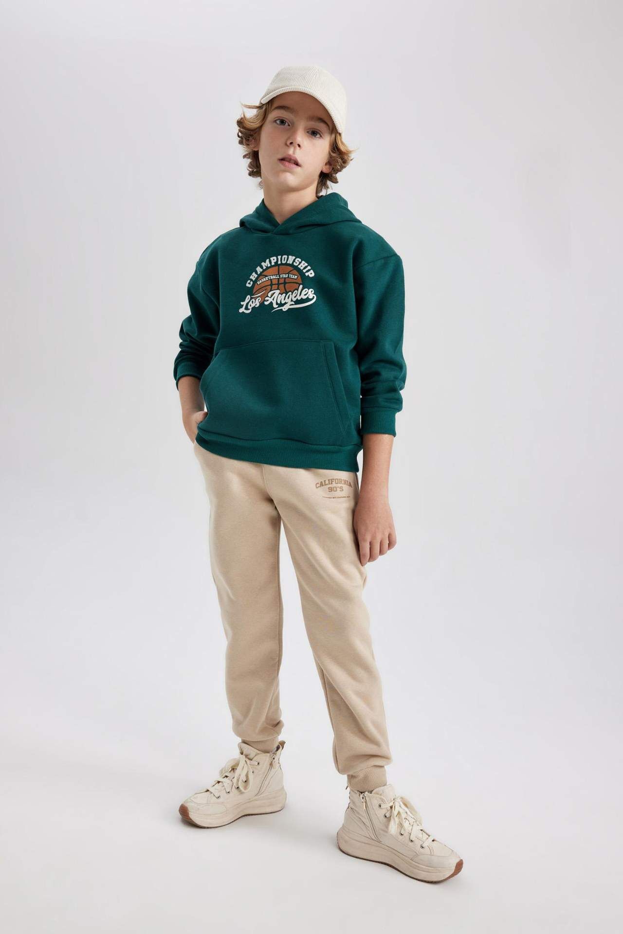Erkek Çocuk Baskılı Kanguru Cepli Kapüşonlu Sweatshirt, yumuşak ve sıcak tutan kumaşıyla gün boyu konfor sağlar. Eğlenceli baskısı ve kapüşon detayıyla çocukların stiline dinamizm katar. Kanguru cebi ise hem şık bir görünüm hem de pratik kullanım sunar. Pamuk 63%,Poliester 37% Manken Bedeni: Göğüs: 0 Boy: 1,37 Basen: 0 Bel: 0