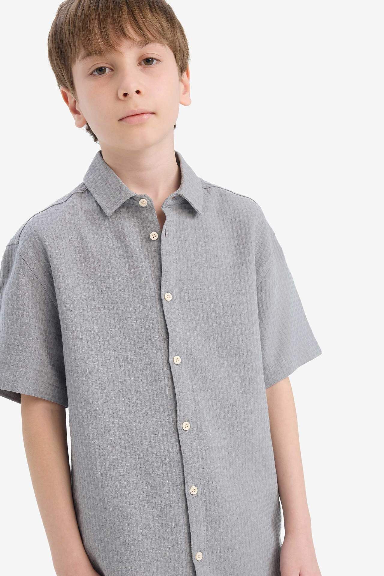 DeFacto Erkek Çocuk Regular Fit Polo Yaka Dokulu Kısa Kollu Gömlek