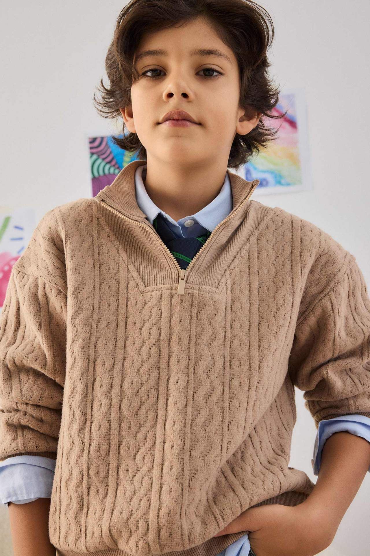 Erkek Çocuk Regular Fit Yarım Fermuarlı İçi Yumuşak Tüylü Sweatshirt