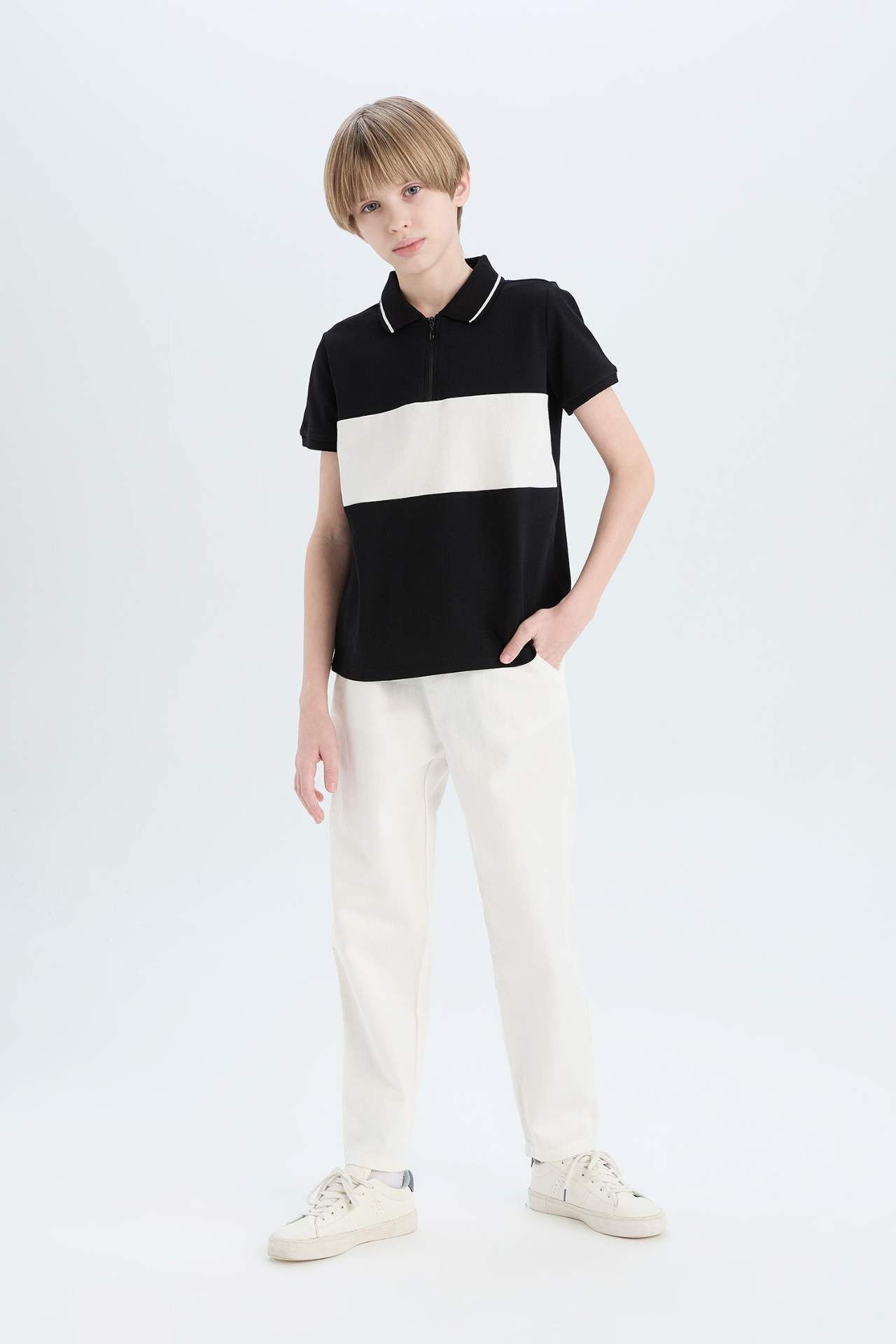 DeFacto Erkek Çocuk Renk Bloklu Pike Kısa Kollu Polo Tişört