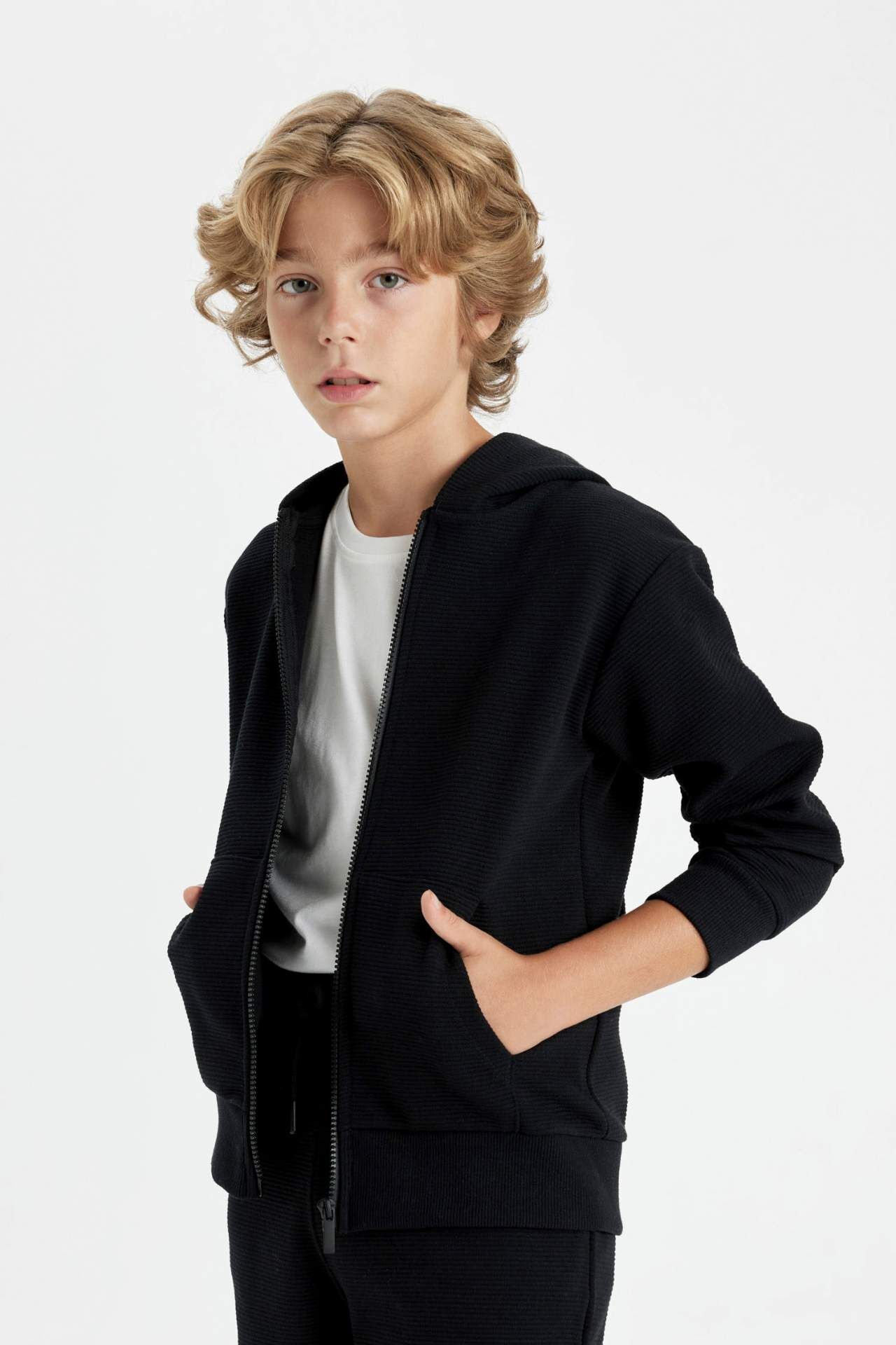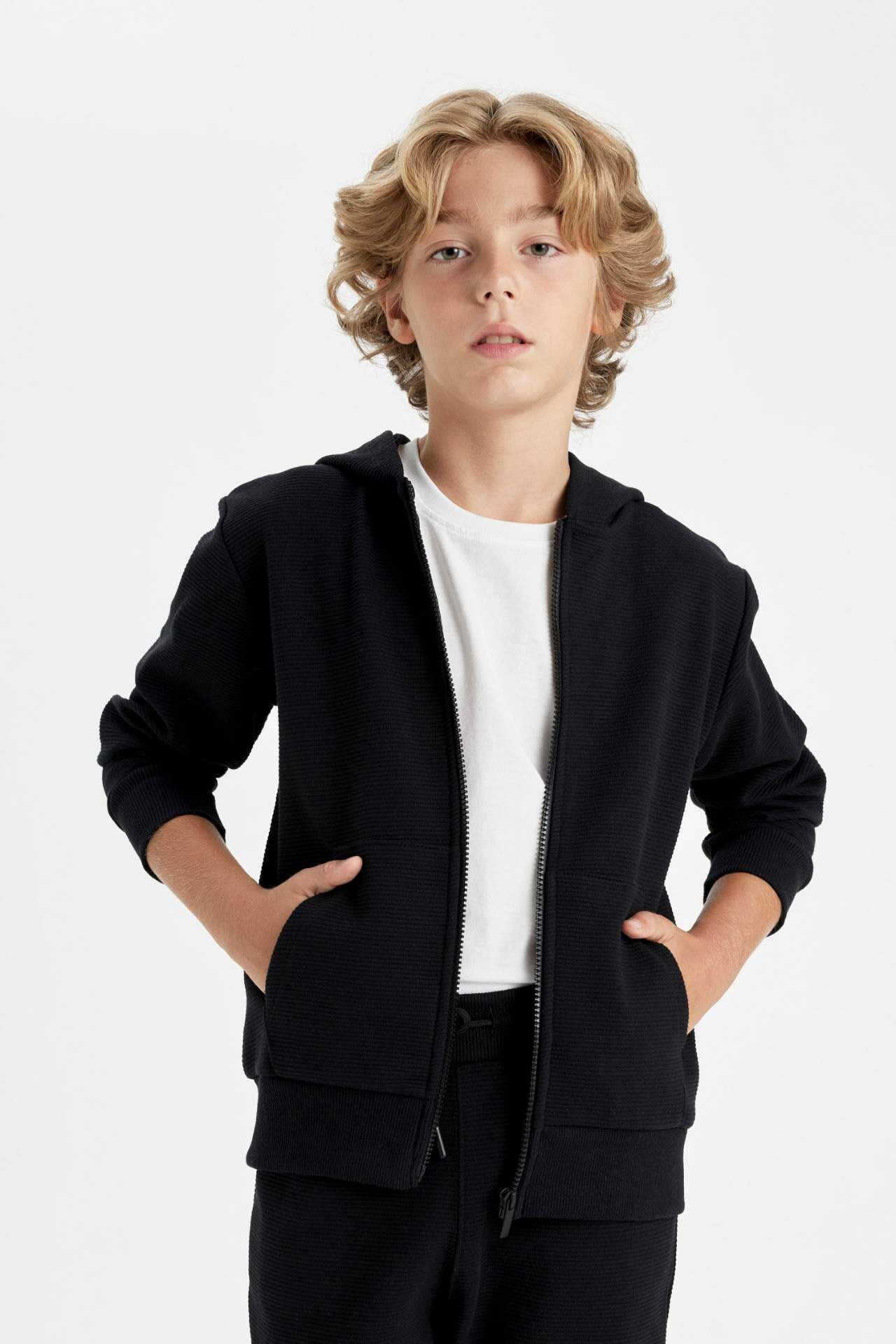 DeFactoFit Erkek Çocuk Siyah Kapüşonlu Fermuarlı Okul Hırkası