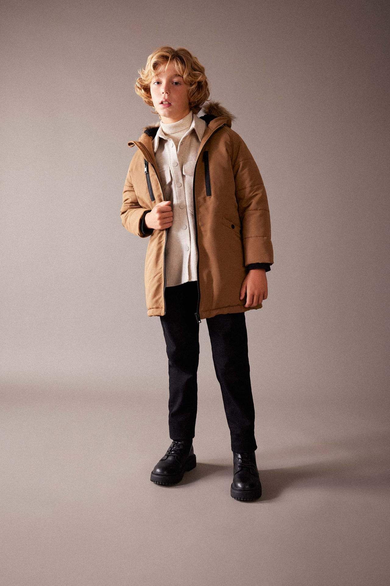 DeFacto Erkek Çocuk Su İtici Çıkarılabilir Kürklü Kapüşonlu Pelüş Astar Kaban