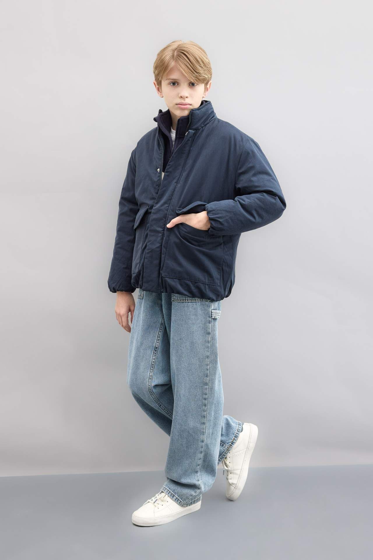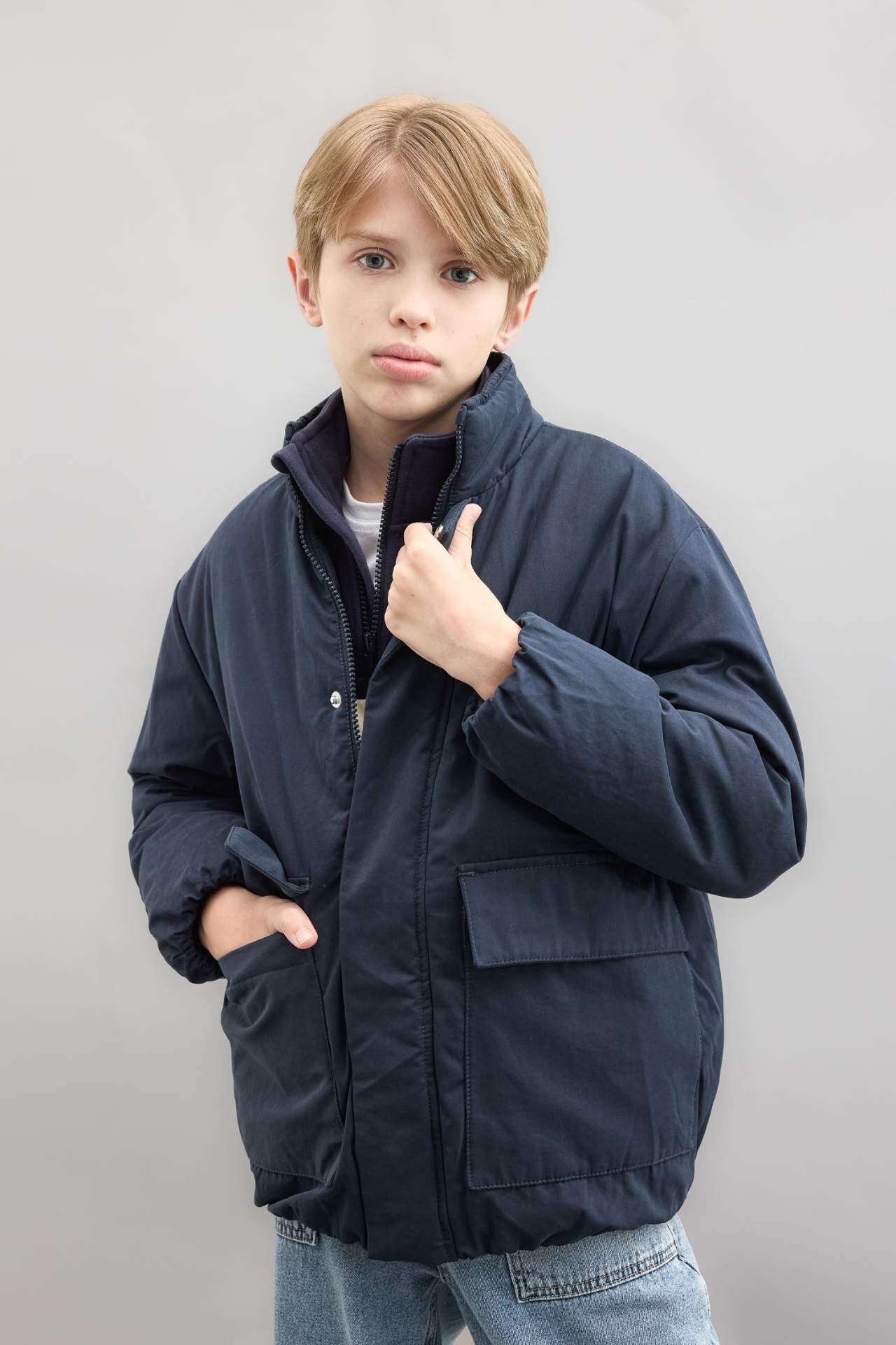 DeFacto Erkek Çocuk Su İtici Dik Yaka Fermuarlı Çıtçıt Kapamalı Cepli Mont