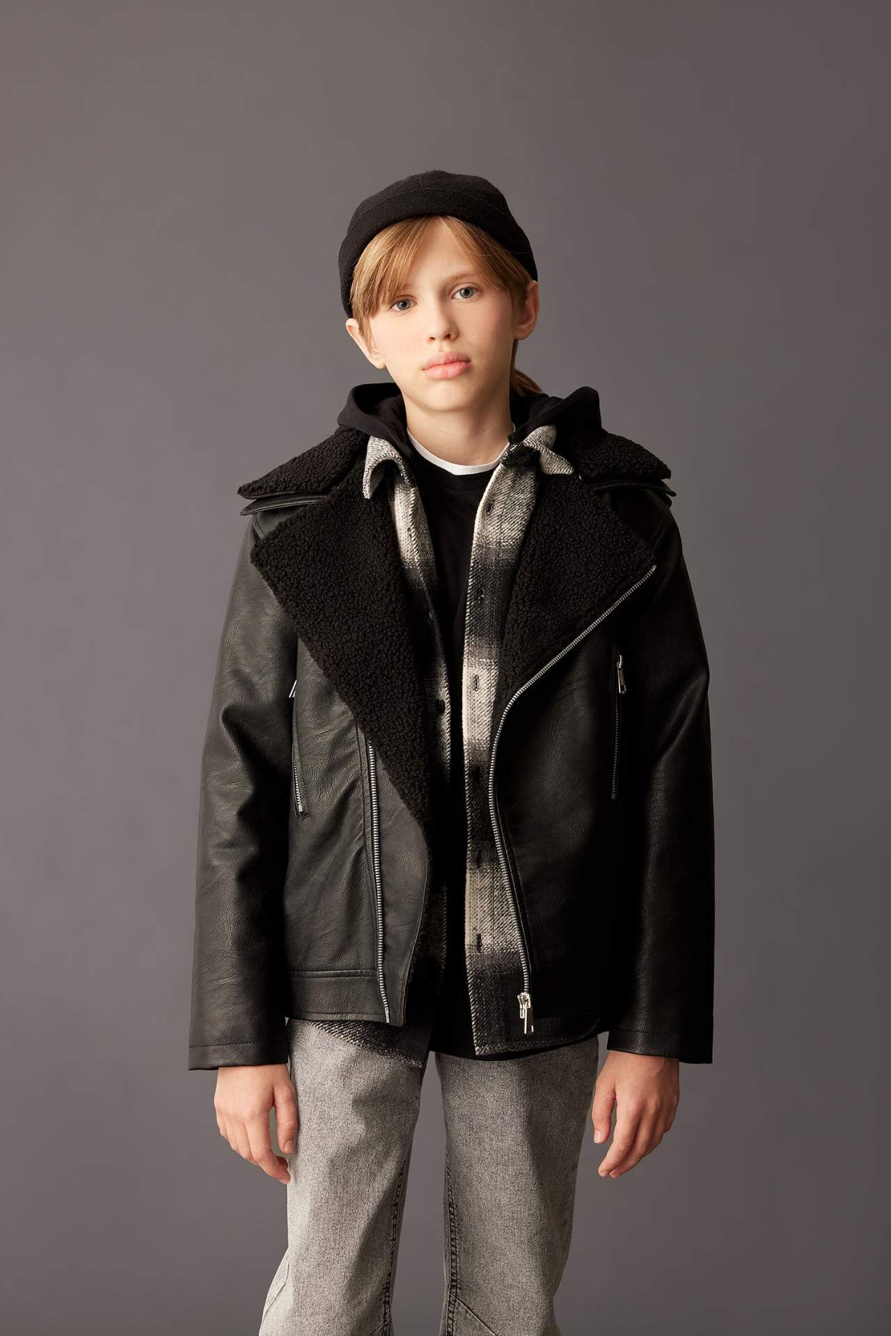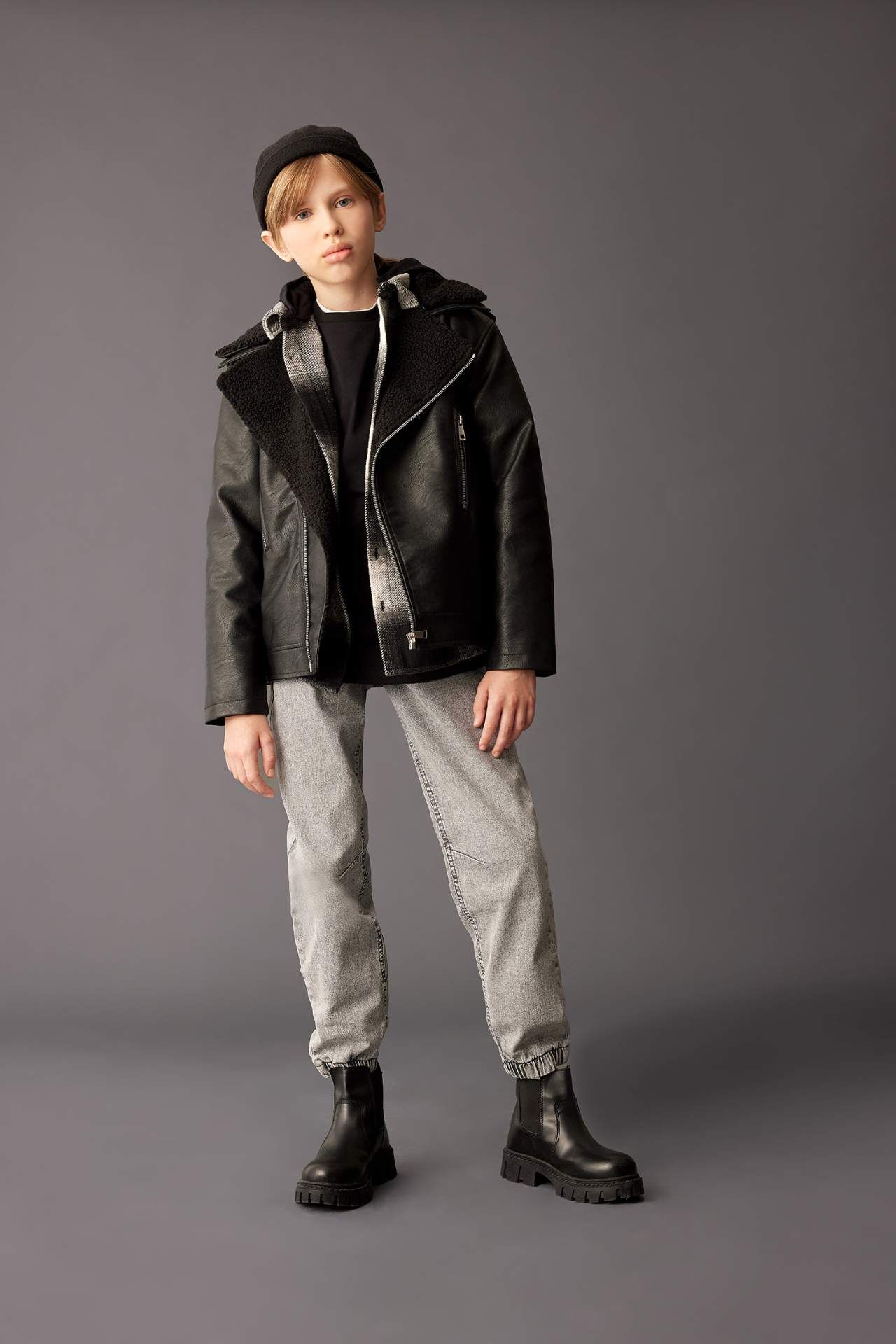 Erkek çocuklar için su itici özellikte, fermuarlı yaka ve pelüş astarlı suni deri ceket mont. Kaliteli malzemelerle üretilmiş, şık ve kullanışlı bir seçenek. Soğuk havalarda sıcak tutarken, su geçirmez özelliğiyle de koruma sağlar. Kışın rahat ve şık görünüm için ideal bir tercih. Poliester 100%,Poliester 100%,Poliester 100%,Poliüretan 100%,Poliester 100%