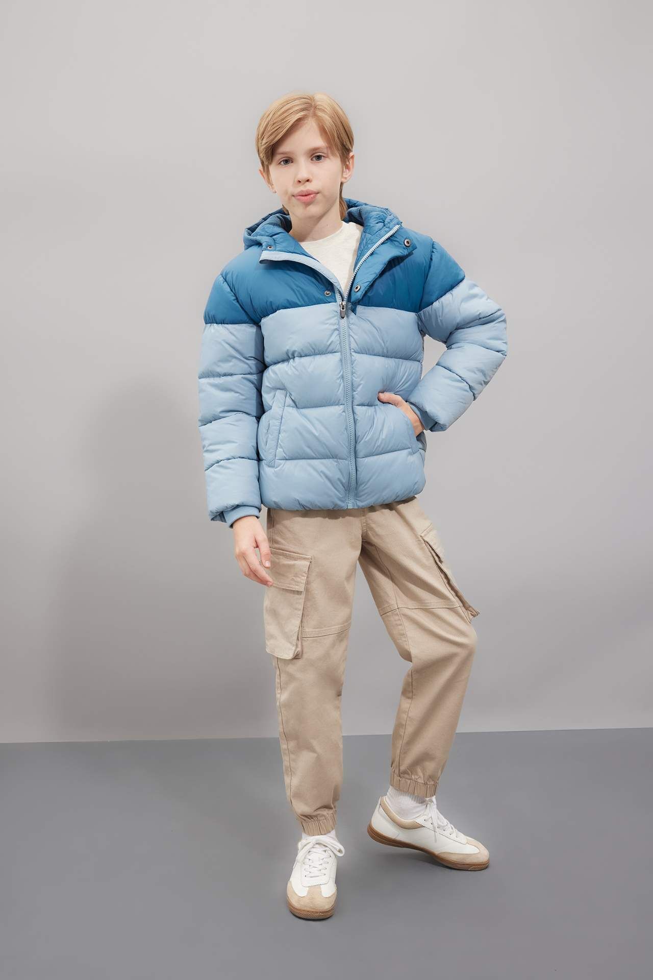 DeFacto Erkek Çocuk Su İtici Kapüşonlu Fermuarlı Cepli Polar Astarlı Şişme Mont