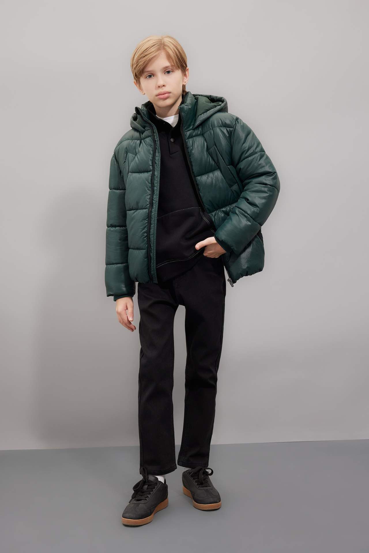 DeFacto Erkek Çocuk Su İtici Kapüşonlu Fermuarlı Cepli Şişme Mont C5565A824WNGN715