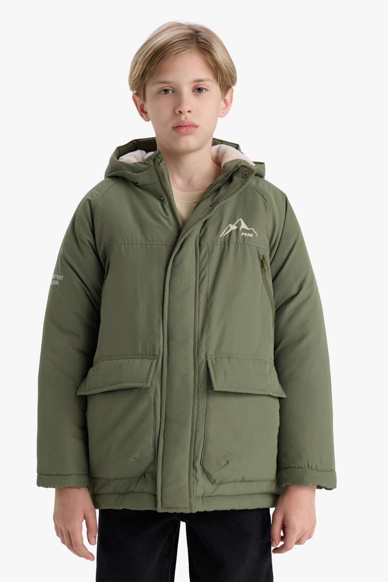 Erkek Çocuk Su İtici Kapüşonlu Polar Astarlı Mont