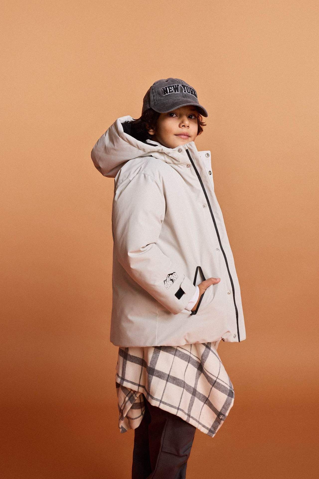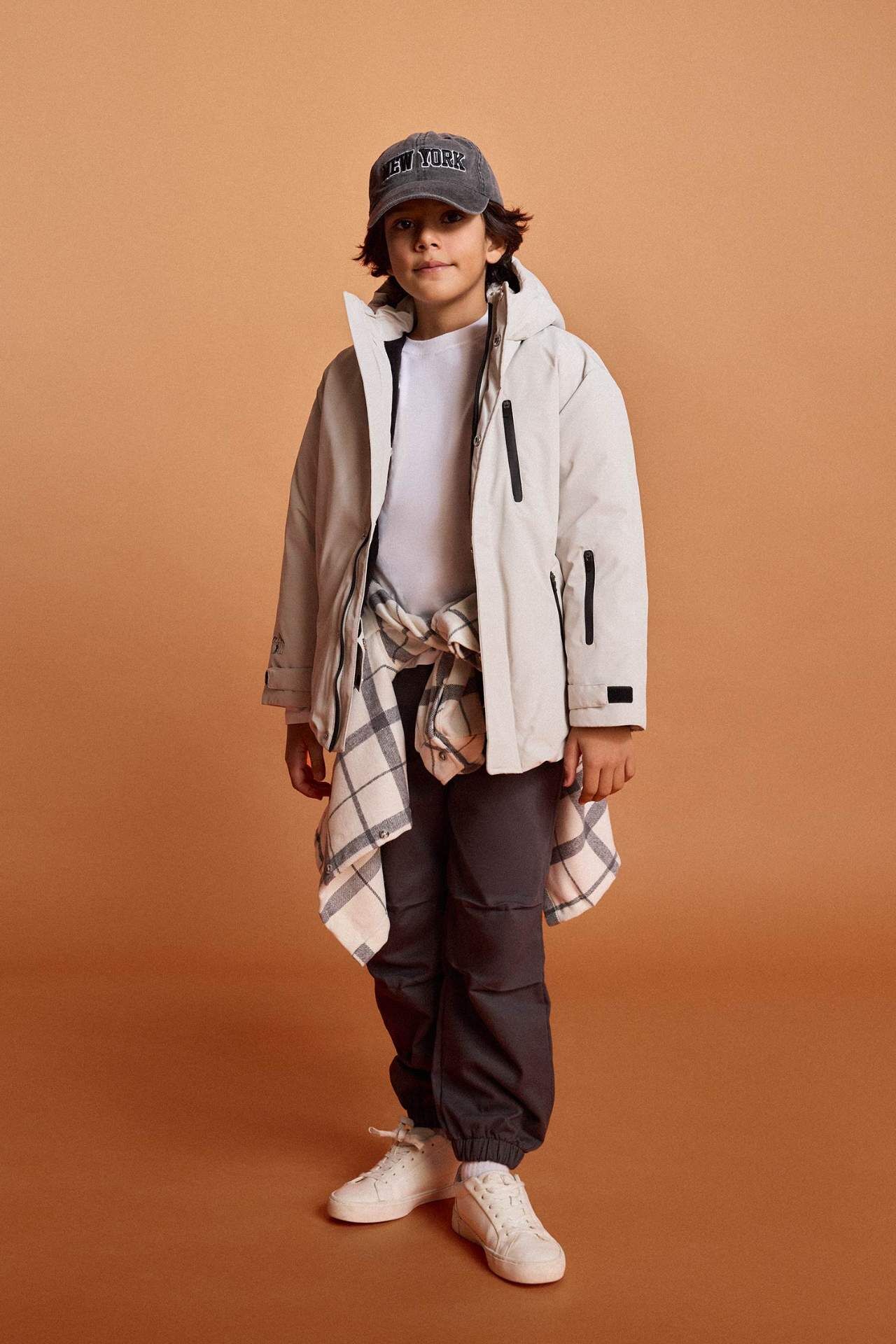 Erkek Çocuk Su İtici Kapüşonlu Polar Astarlı Mont