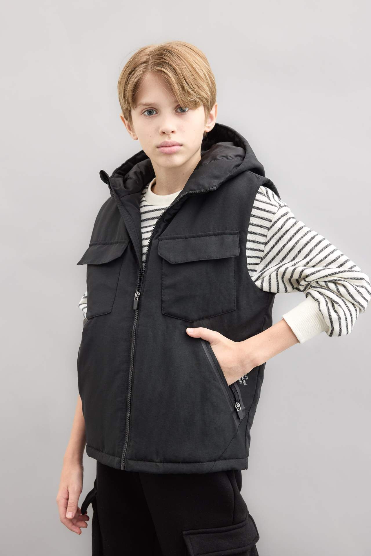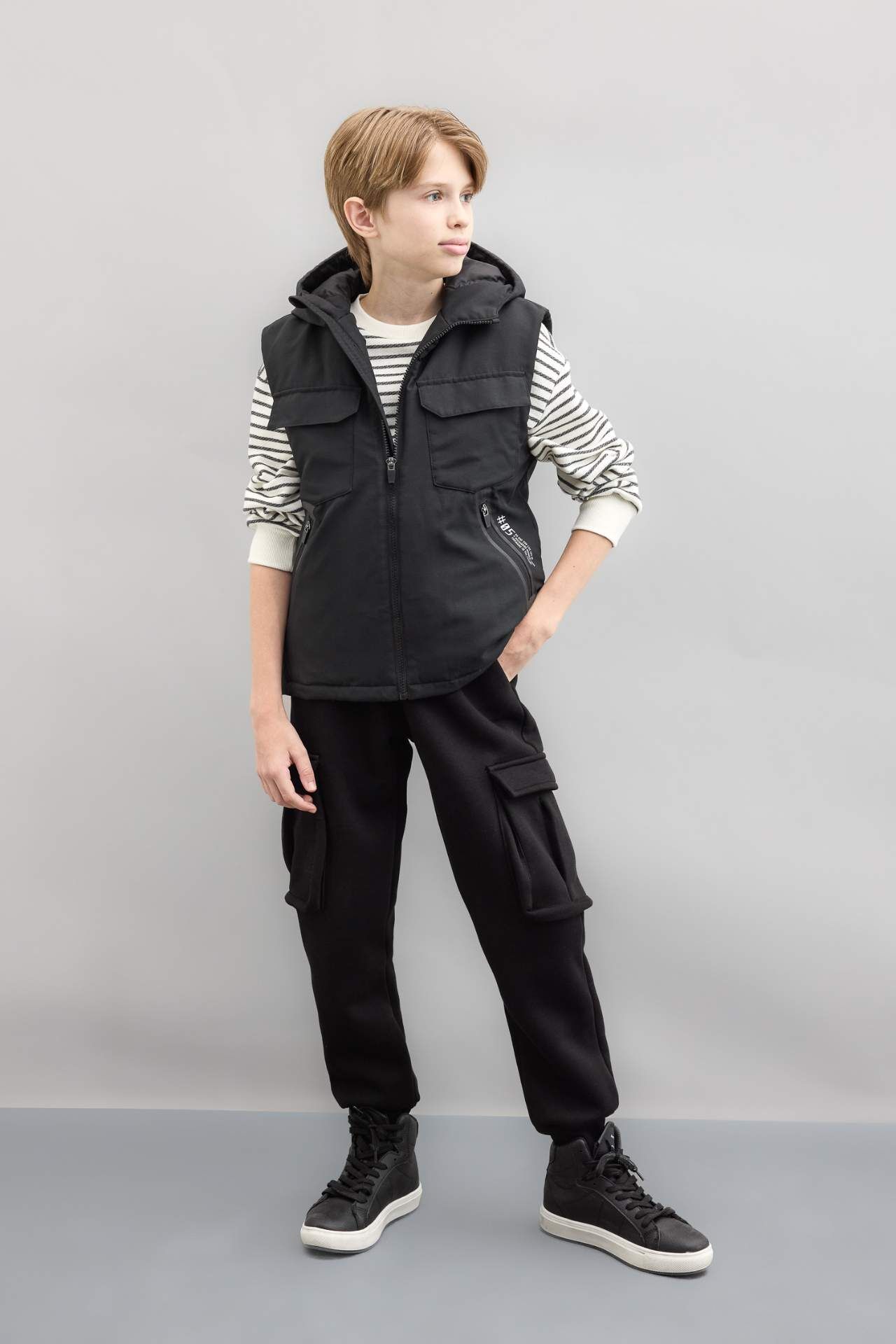 Erkek çocuk su itici kapüşonlu yelek, şıklığı ve pratikliği bir arada sunar. Dayanıklı malzemeleri ve modern tasarımıyla her mevsim kullanım için idealdir. Çocuğunuzun tarzını yansıtan bu yelek, dış etkenlere karşı koruma sağlarken rahat hareket etmesine olanak tanır. Kaliteli ve şık bir seçim!