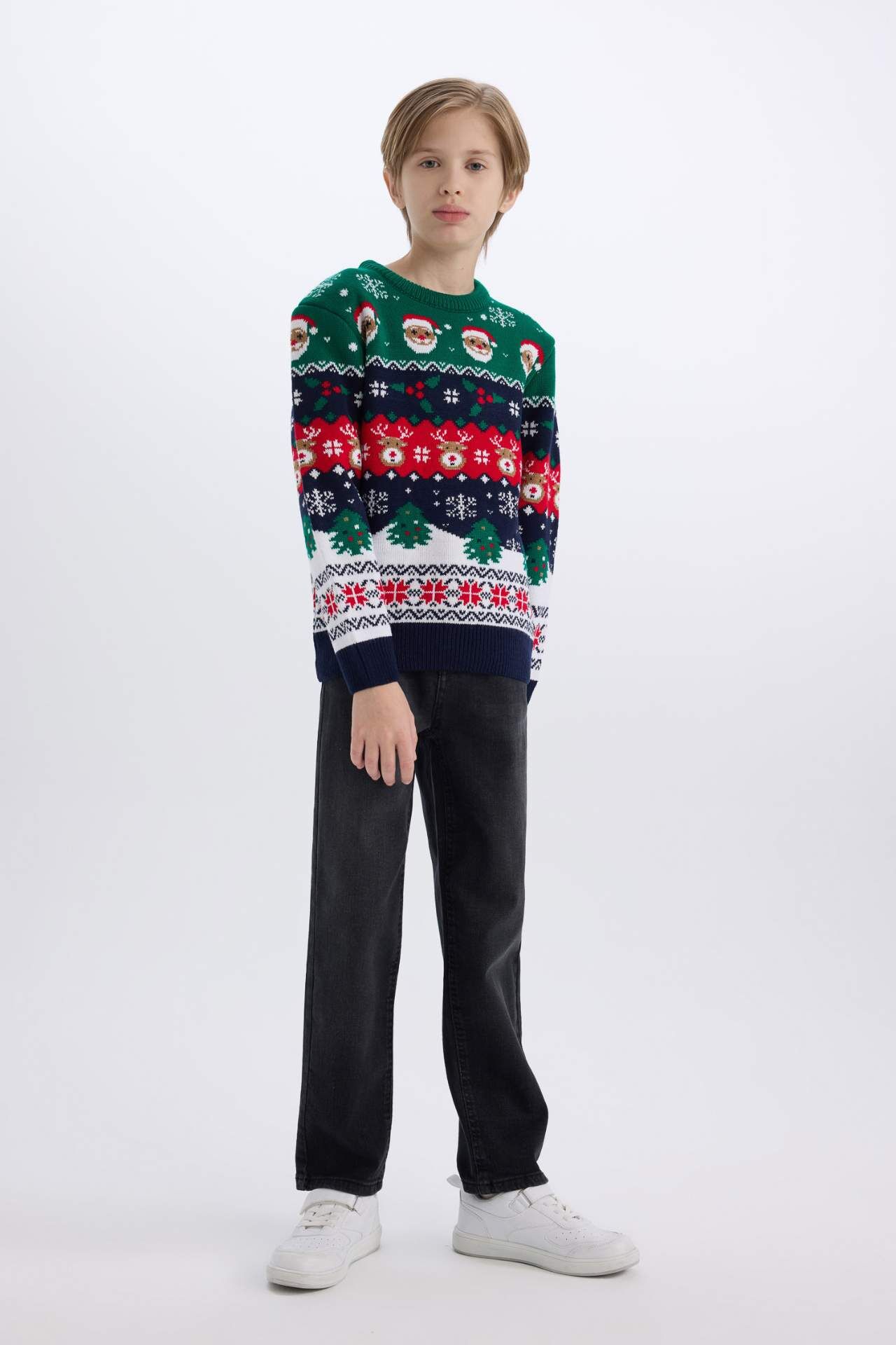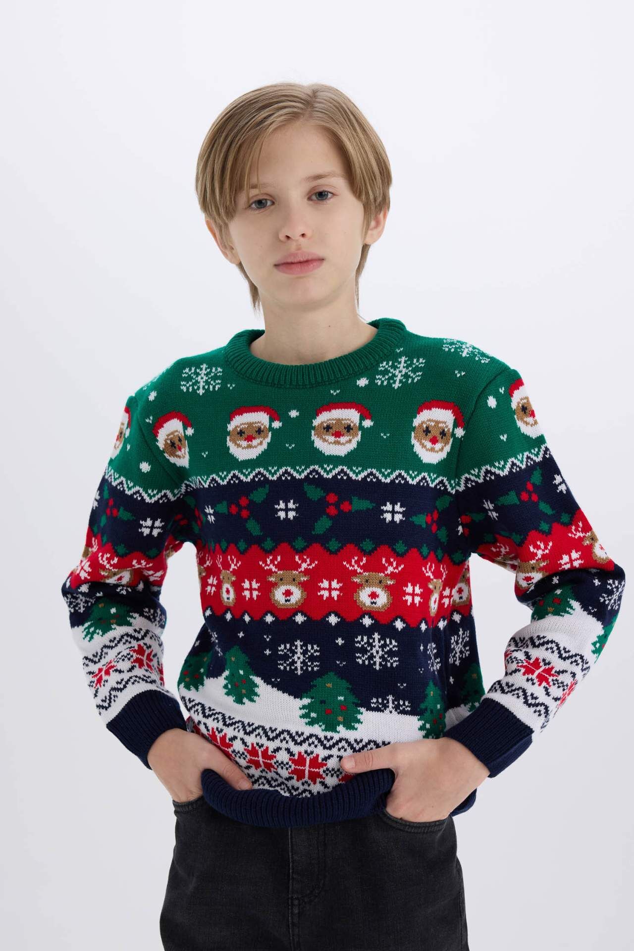DeFacto Erkek Çocuk Yılbaşı Temalı Bisiklet Yaka Triko Kazak B2246A824CWNV135