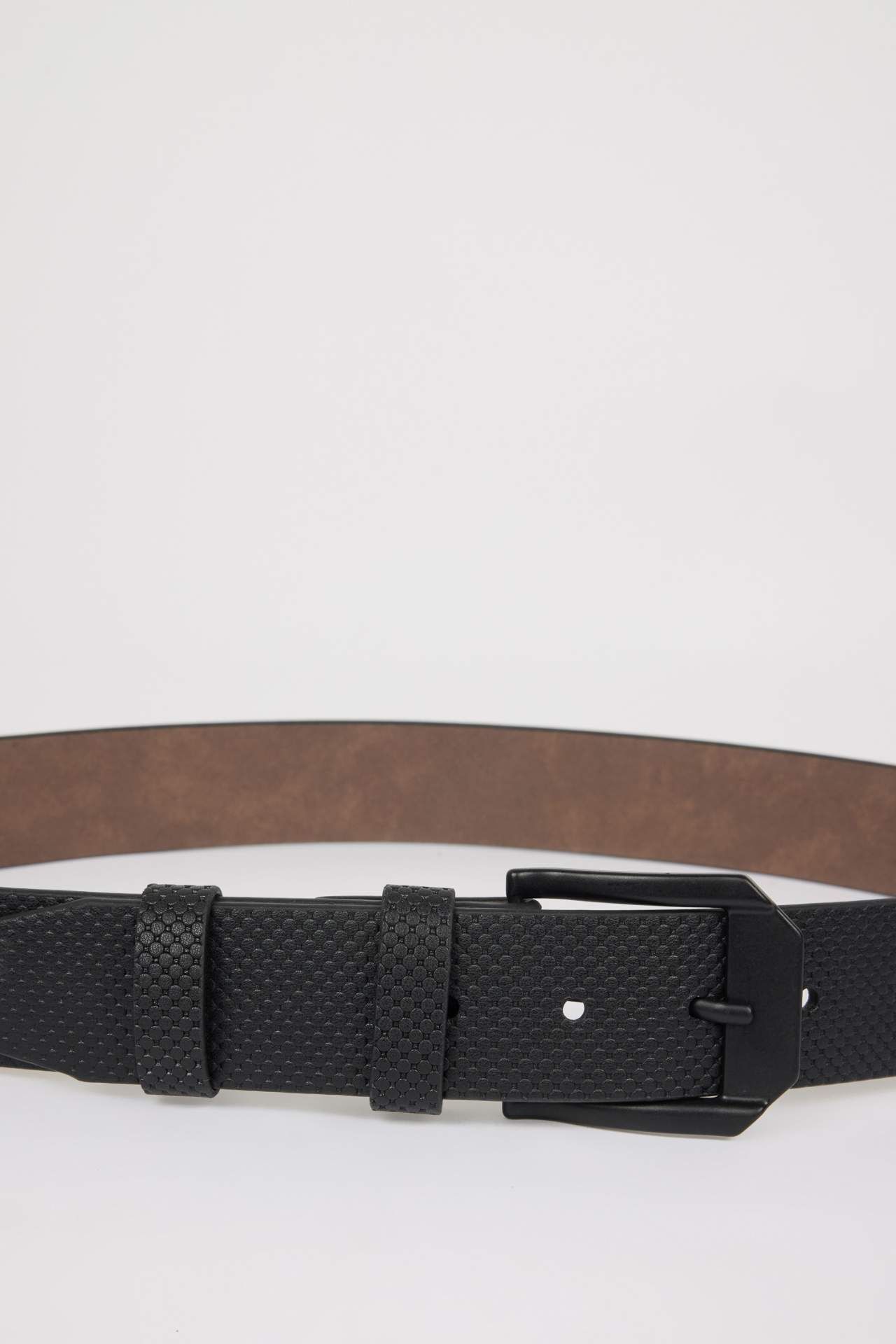 Dikdörtgen metal tokalı, 4 cm. ebattın da, deri görünümlü materyalden üretilmiş kemer, özellikle klasik tarz takımlar, gömlekler, kumaş pantolonlar gibi parçaları şık tasarımı ile tamamlar. En trend kombinlerinizin vazgeçilmez parçası olacak ve sade tasarımı ile kullanım kolaylığı sağlayan DeFacto Erkek Suni Deri Jean Kemeri. Poliüretan 100%