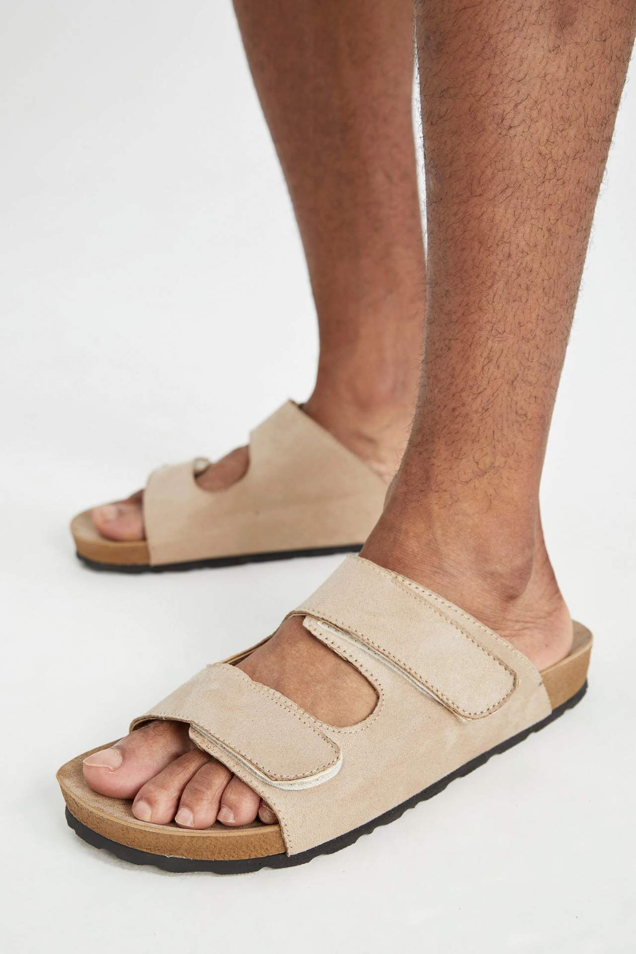 Erkek Düz Taban Çift Bantlı Suni Deri Terlik