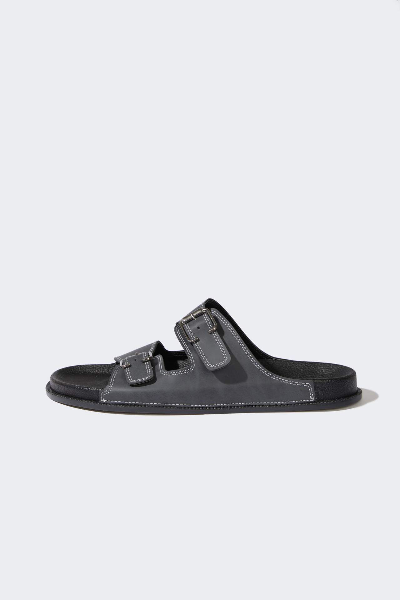 Erkek Düz Taban Çift Bantlı Suni Deri Terlik
