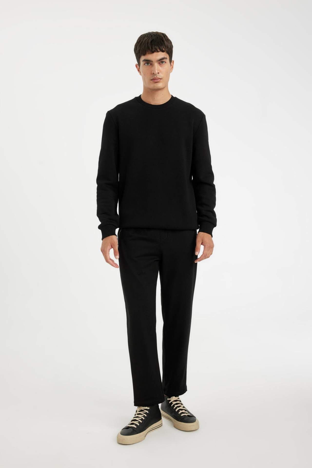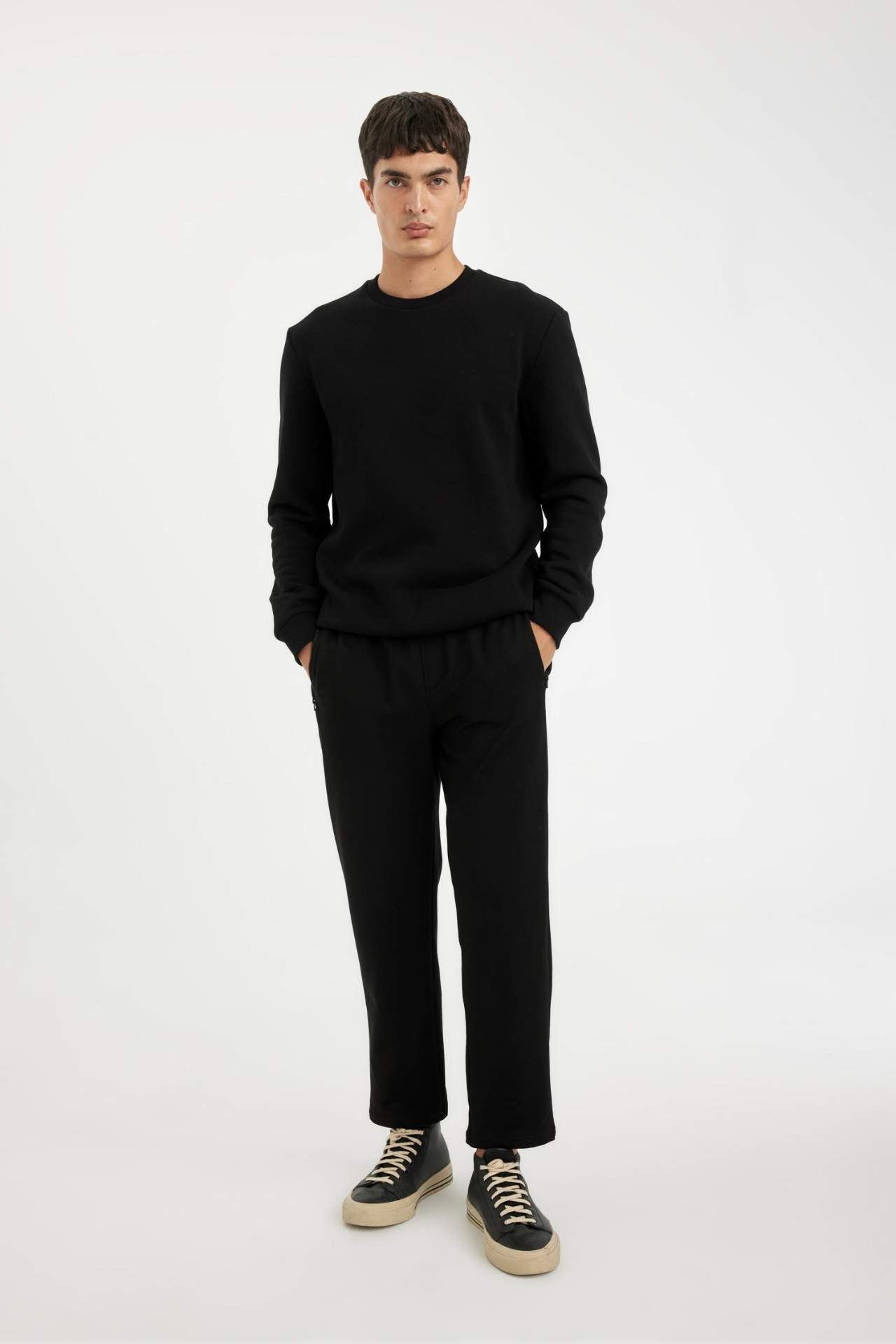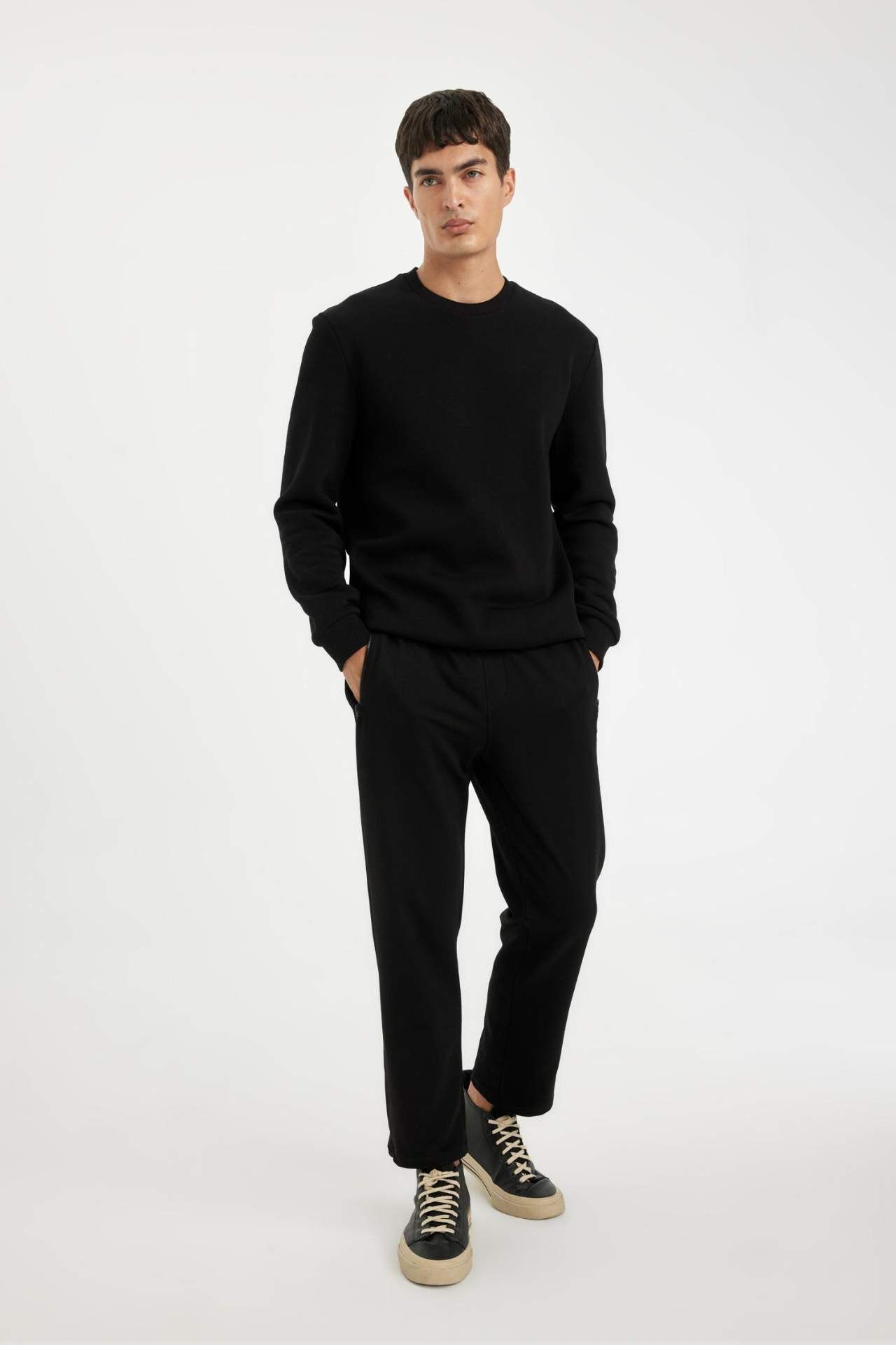 DeFacto Erkek Lacivert Slim Fit Dar Kesim Fermuarlı Basic Düz Paça Siyah Eşofman Altı
