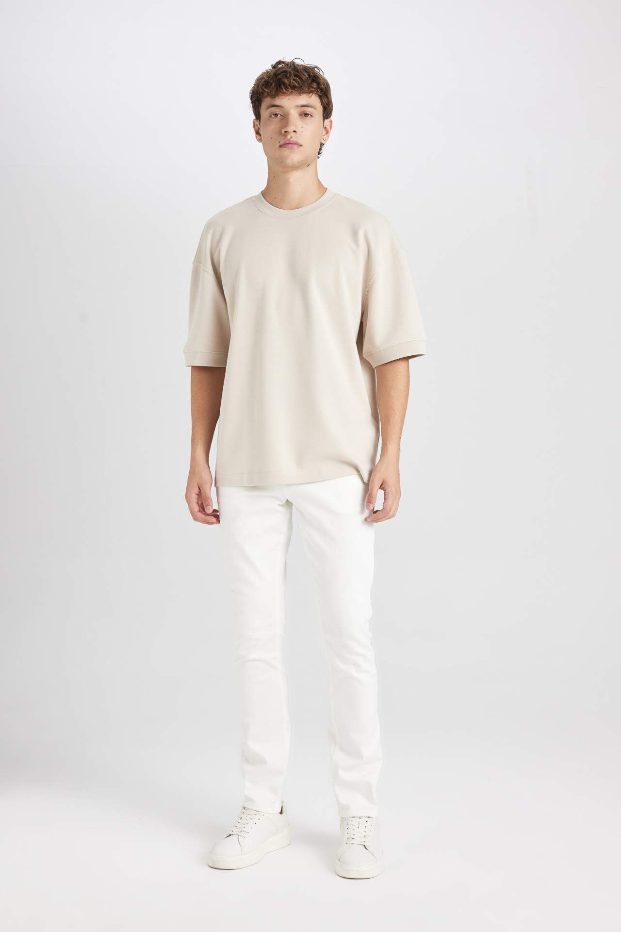 DeFacto Erkek Loose Fit Bisiklet Yaka Ağır Kumaş Kısa Kollu Basic Düz Tişört