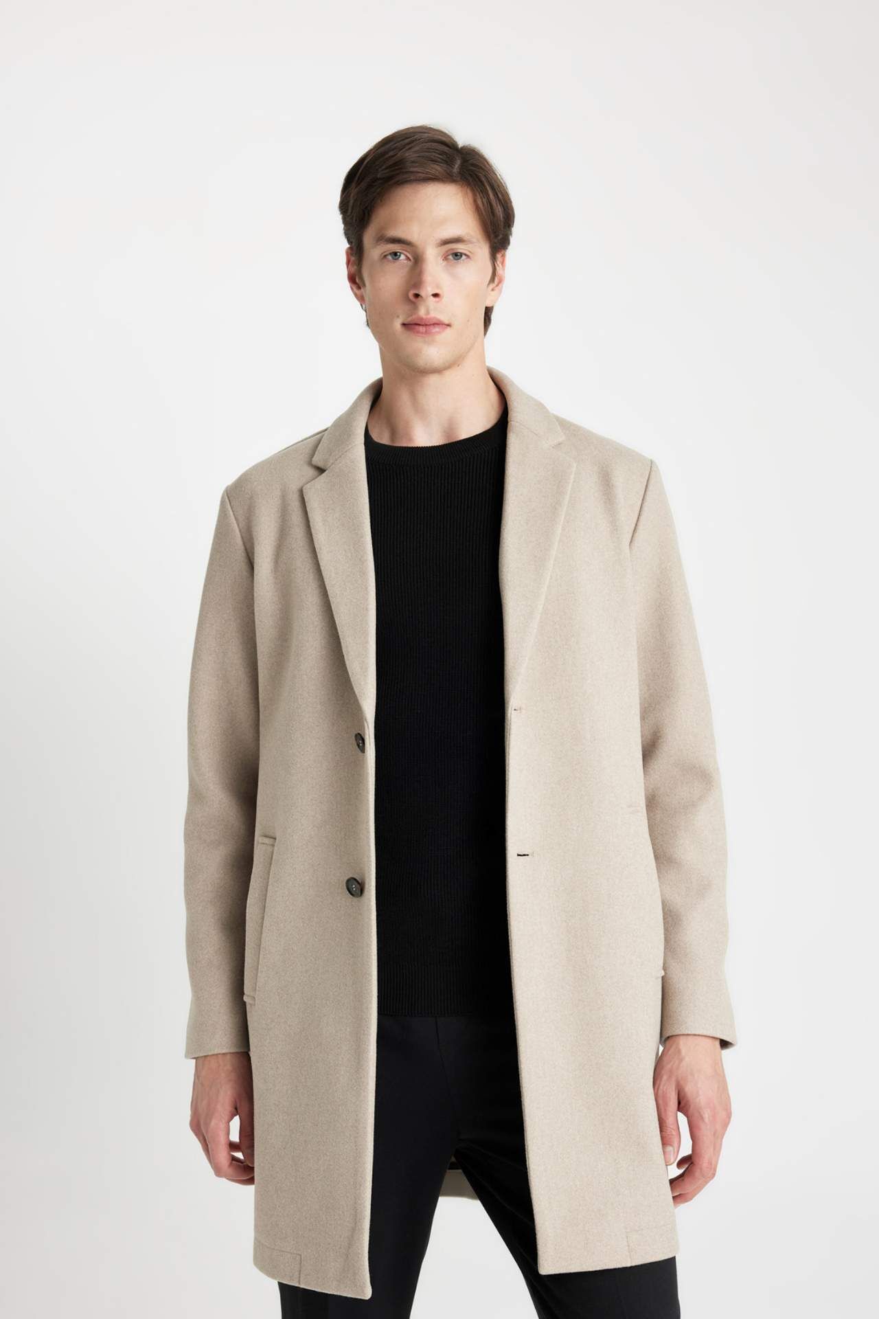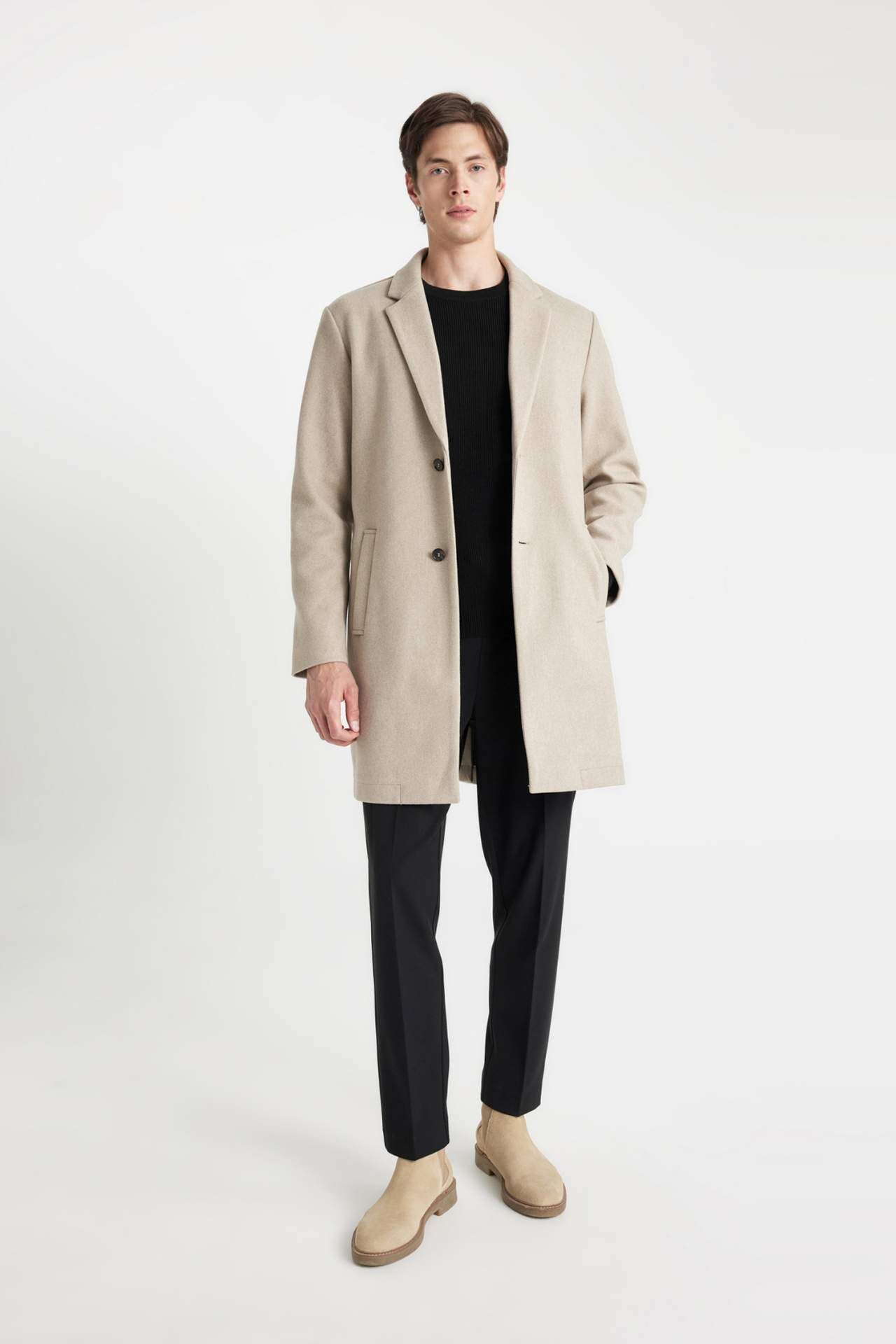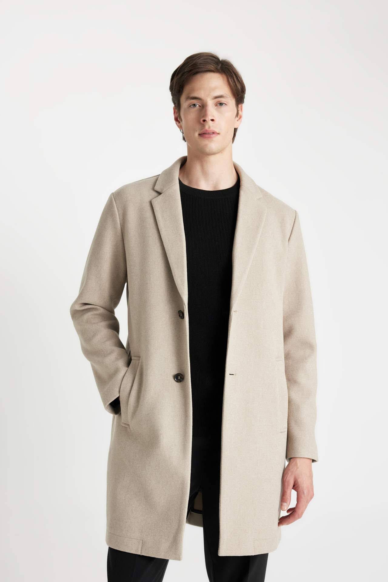 DeFacto Erkek Vizon Relax Fit Ceket Yaka Düğmeli Cepli Kaşe Kaban Parka
