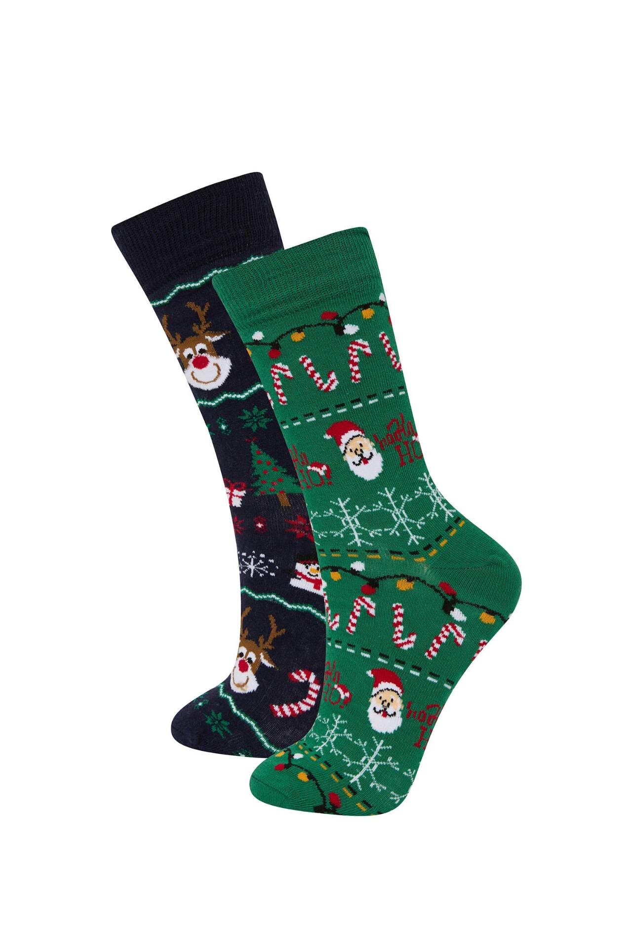 DeFacto Erkek Yılbaşı Temalı 2'li Pamuklu Uzun Çorap E2446AXNSKR1