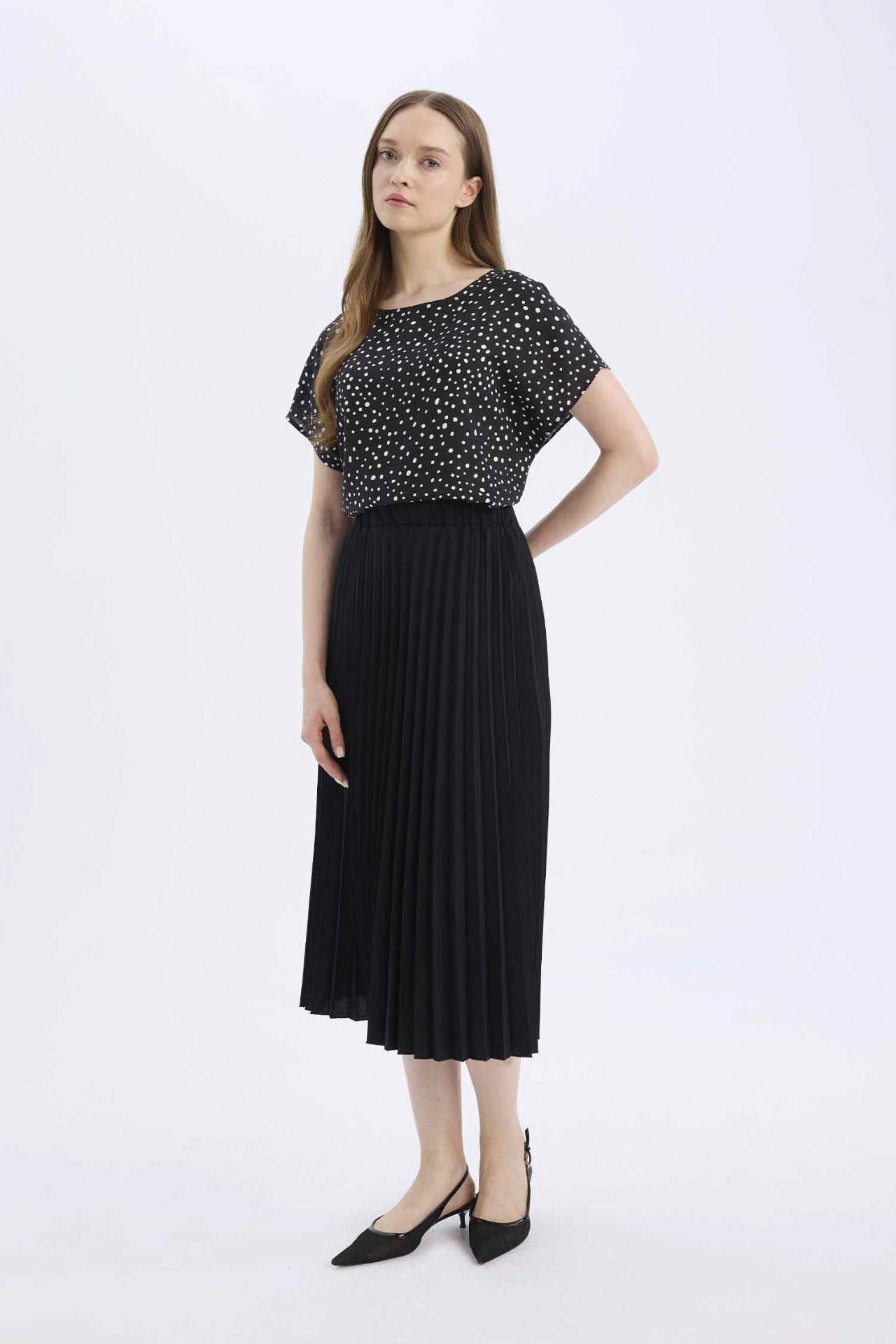 Beli lastikli tasarımıyla konfor sağlayan bu basic düz pilise aerobin midi etek, hafif ve akışkan kumaşıyla hareket özgürlüğü sunar. Zarif pilise detayları sayesinde hem günlük hem özel kombinlere şıklık katar. Poliester 100%,Poliester 100%,Poliester 100%,Poliester 100%,Poliester 100%,Poliester 100%,Poliester 100%,Poliester 100%,Poliester 100%,Poliester 100%,Poliester 100% Manken Bedeni: Göğüs: 84 Boy: 1,74 Basen: 92 Bel: 61