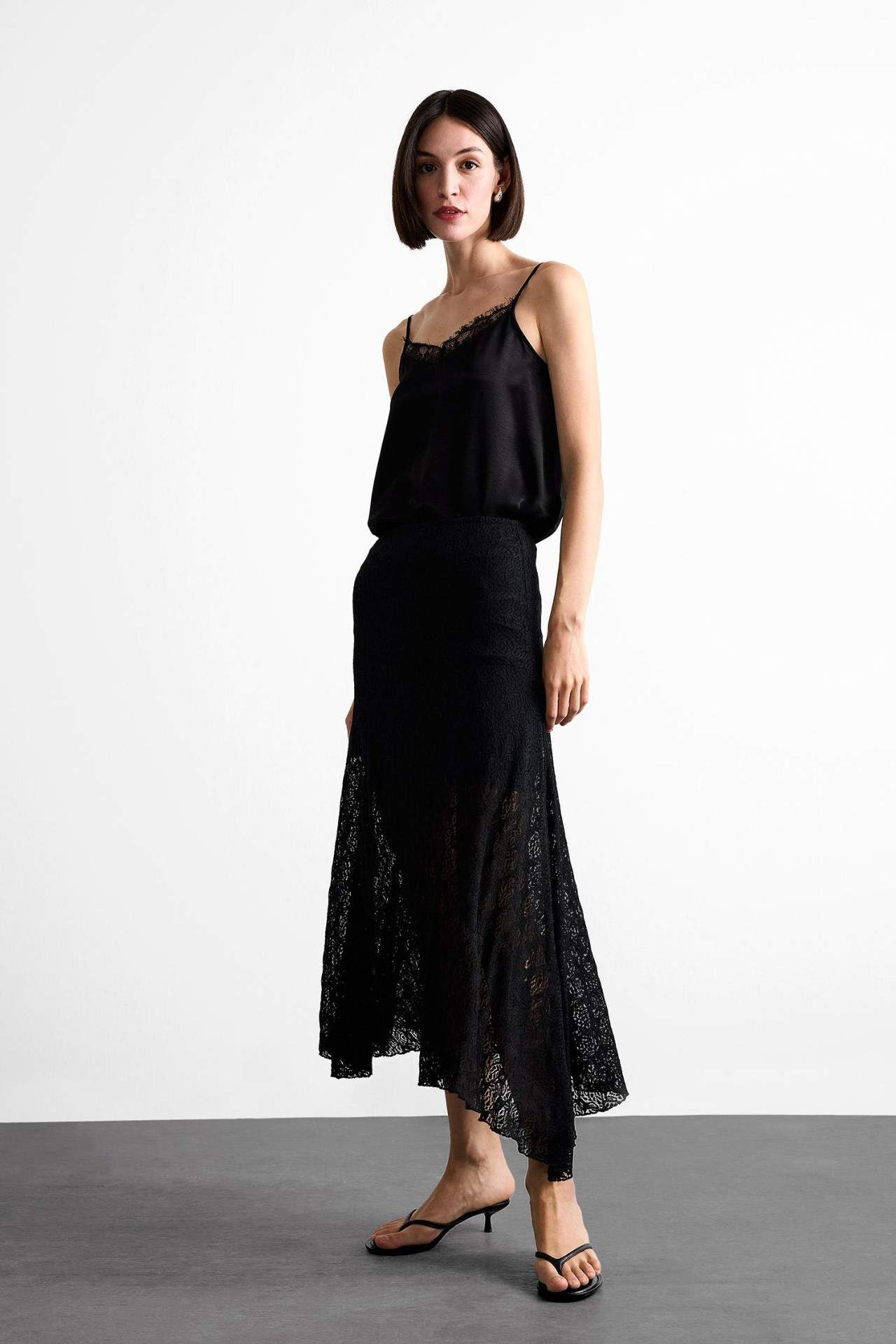 Esnek belli maxi asimetrik siyah dantel etek, zarif dantel detayları ve asimetrik kesimiyle şıklığınızı ön plana çıkarır. Esnek beli sayesinde rahatlık sunarken, özel davetler için ideal bir seçenektir. Elastan 3%,Poliester 97%,Poliester 100%,Elastan 3%,Poliester 97%,Poliester 100%,Elastan 3%,Poliester 97%,Poliester 100%,Elastan 3%,Poliester 97%,Poliester 100%,Elastan 3%,Poliester 97%,Poliester 100%,Elastan 3%,Poliester 97%,Poliester 100% Manken Bedeni: Göğüs: 83 Boy: 1,81 Basen: 90 Bel: 58