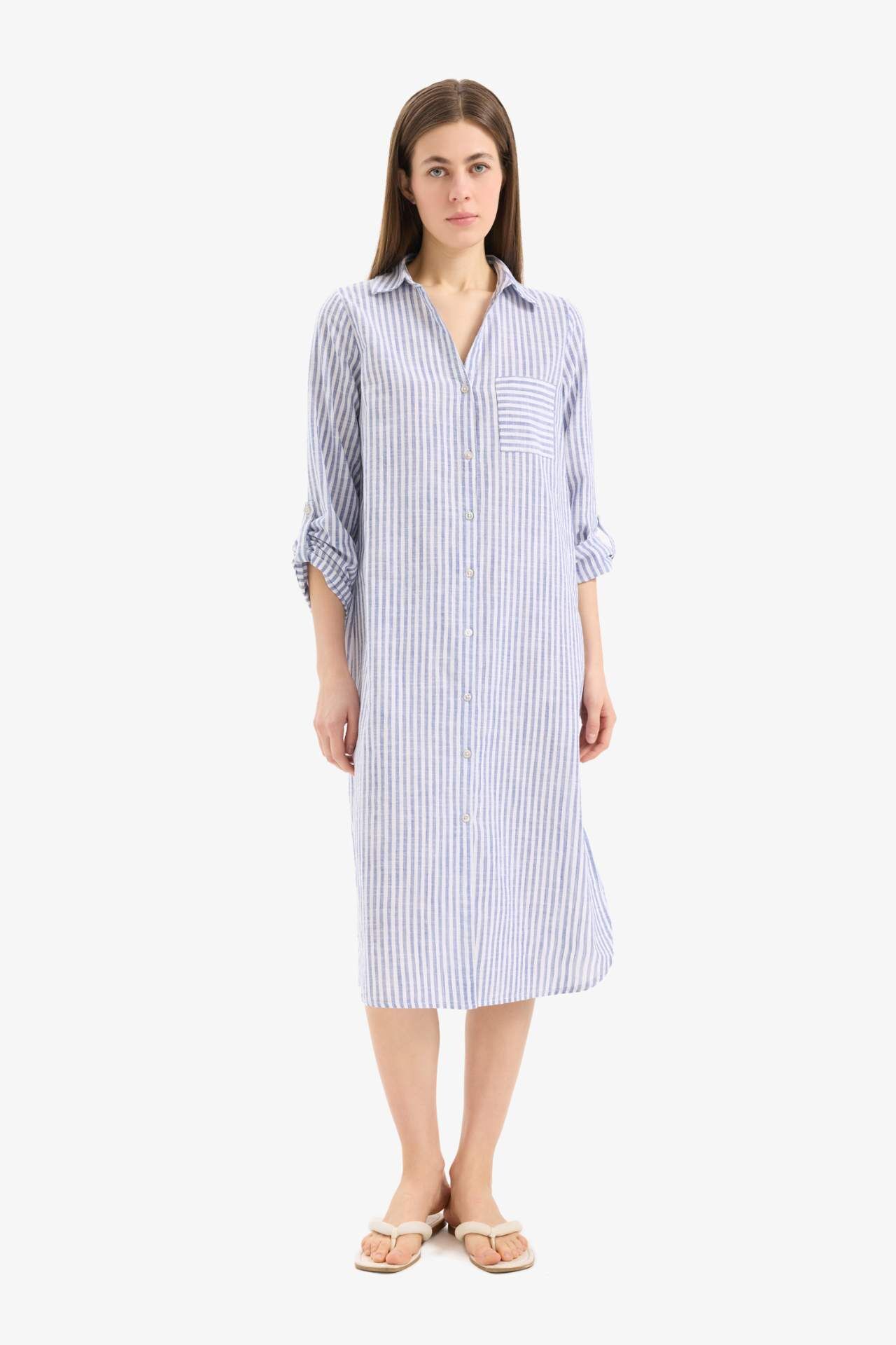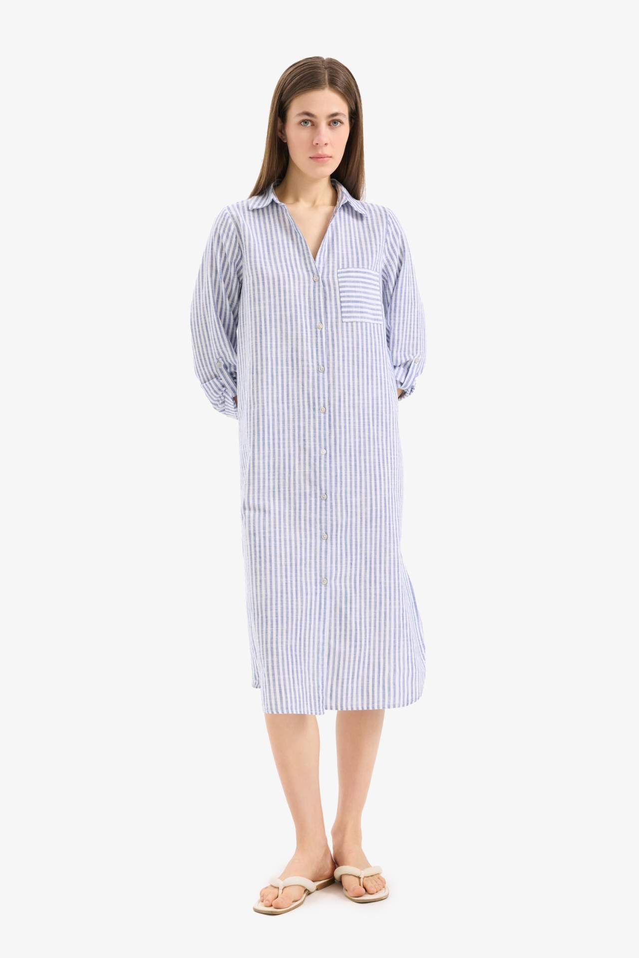 Fall in Love Gömlek Yaka Uzun Pilaj Gömleği