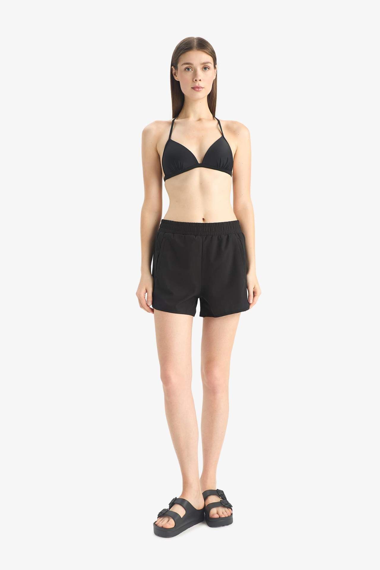 Siyah Kadın Deniz Şortu, yaz mevsimi için idealdir. Regular Fit kesimi ve kısa boyuyla konforlu ve şık bir görünüm sunar. Yetişkin kadınlar için tasarlanmıştır. Elastan 12%,Poliester 88%,Elastan 12%,Poliester 88%,Elastan 12%,Poliester 88%,Elastan 12%,Poliester 88%,Elastan 12%,Poliester 88% Manken Bedeni: Göğüs: 82 Boy: 1,79 Basen: 90 Bel: 60