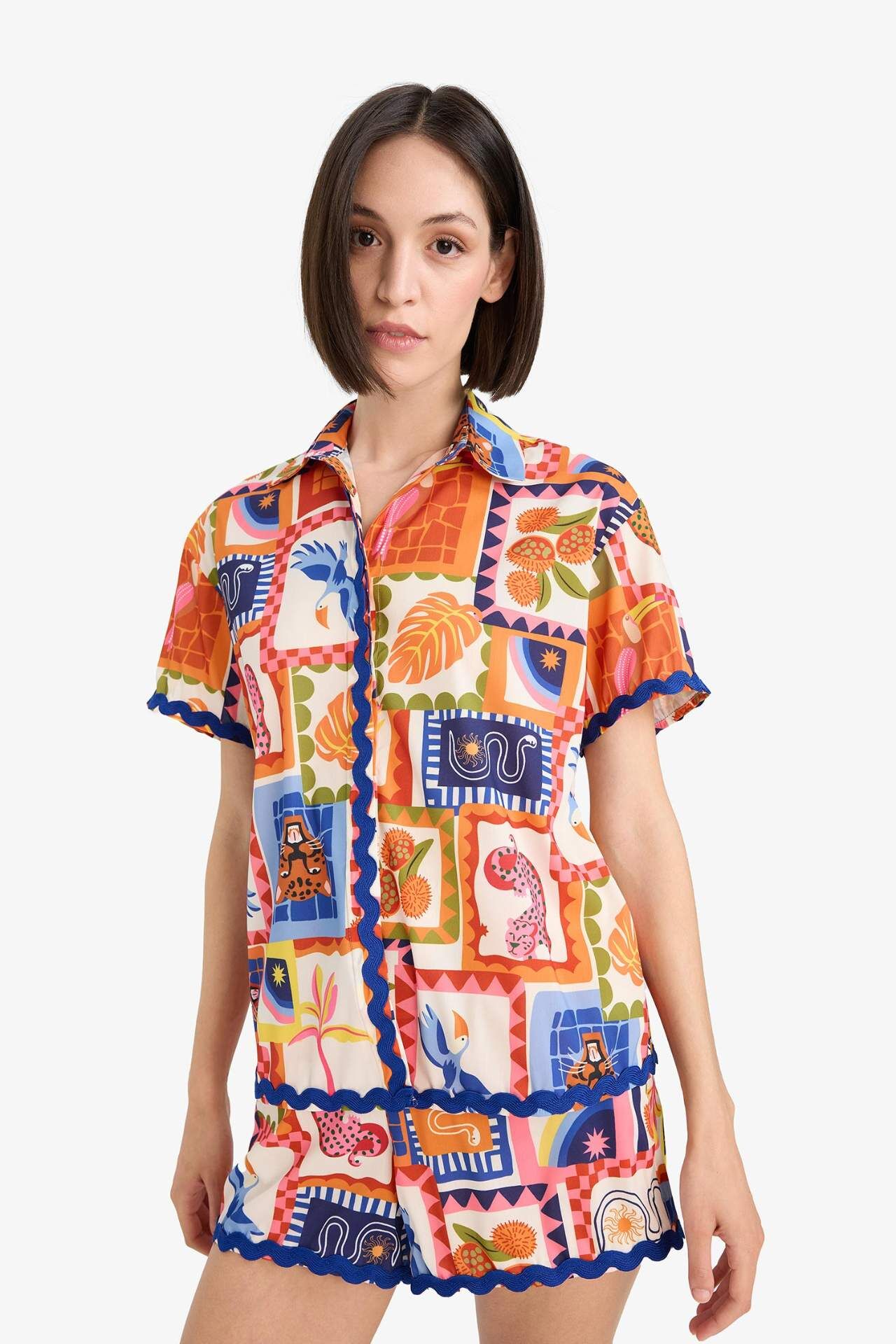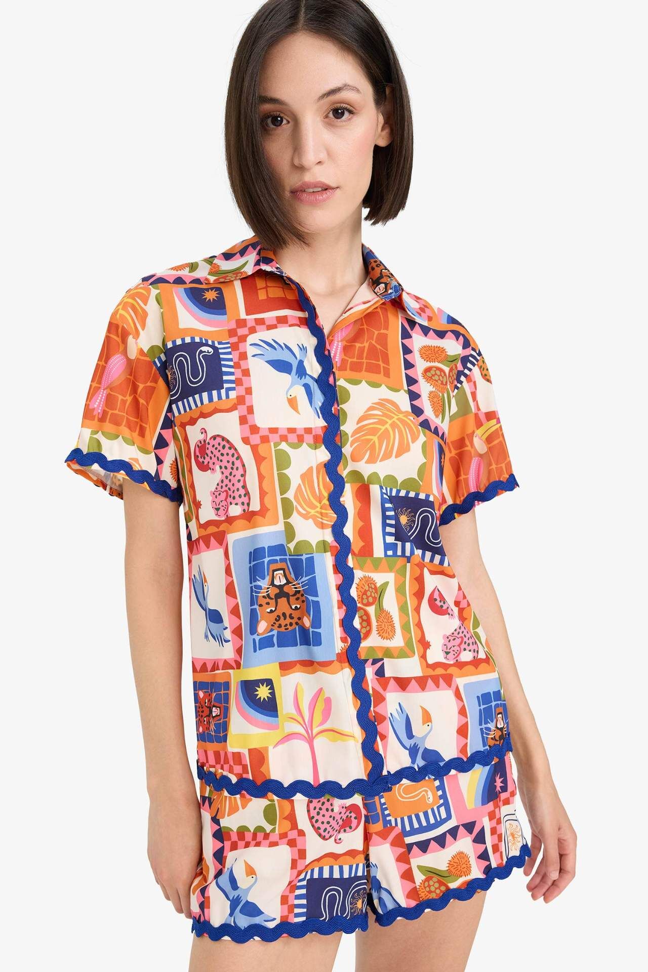 -Fall in Love Regular Fit Tropikal Desenli Plaj Kıyafeti F5496AX25HSOG343