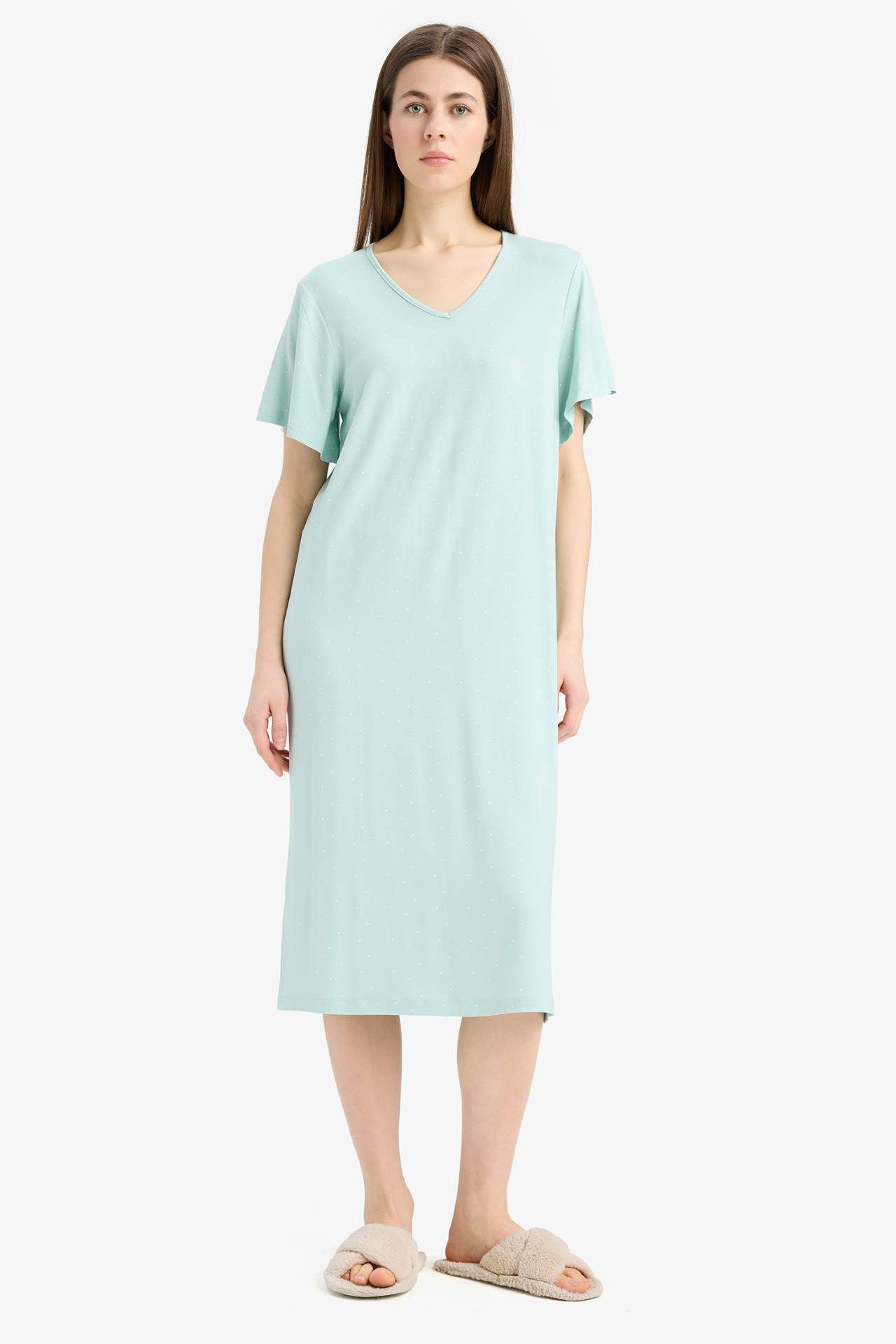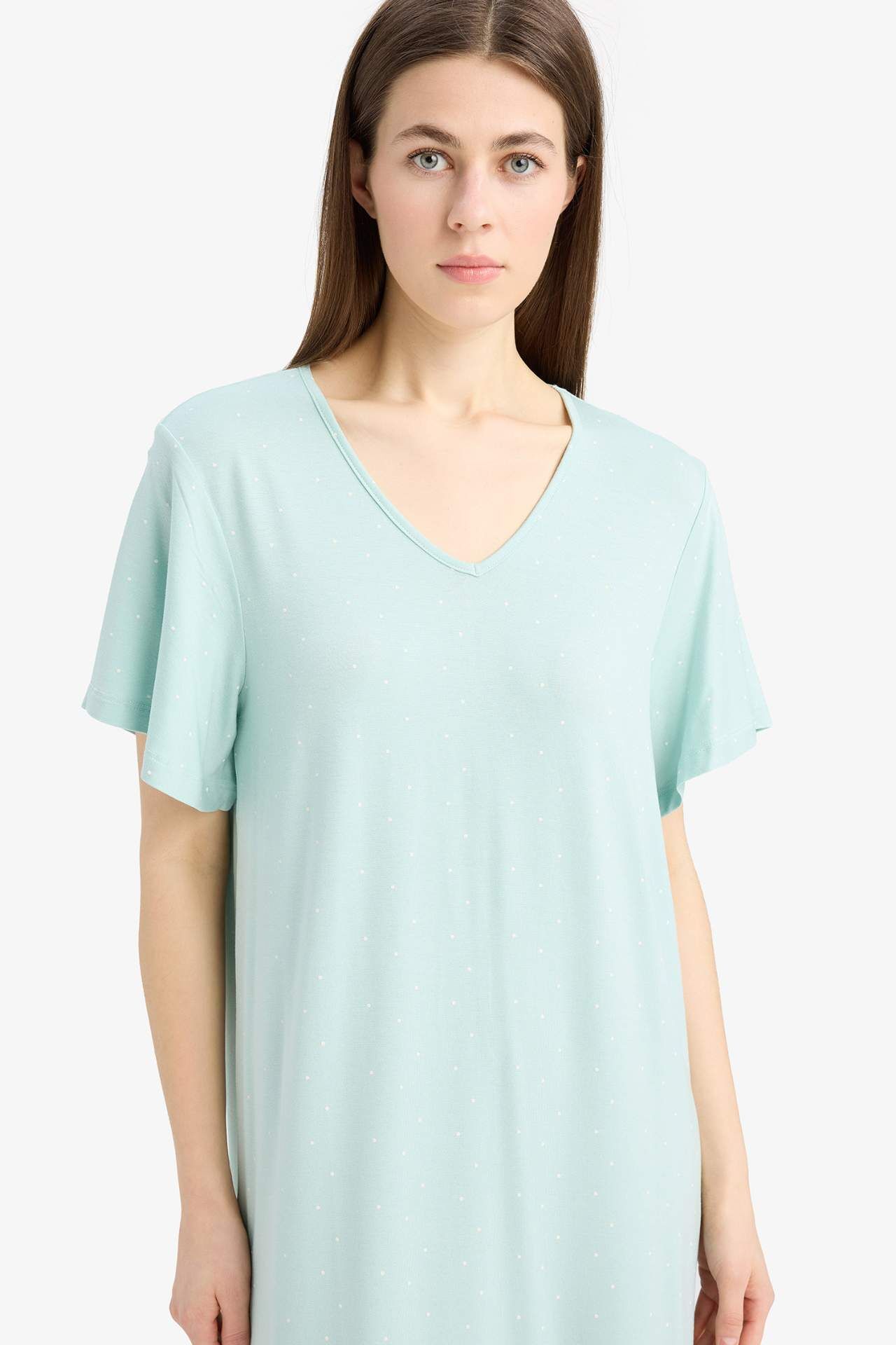 Fall in Love V Yaka Kısa Kollu Gecelik