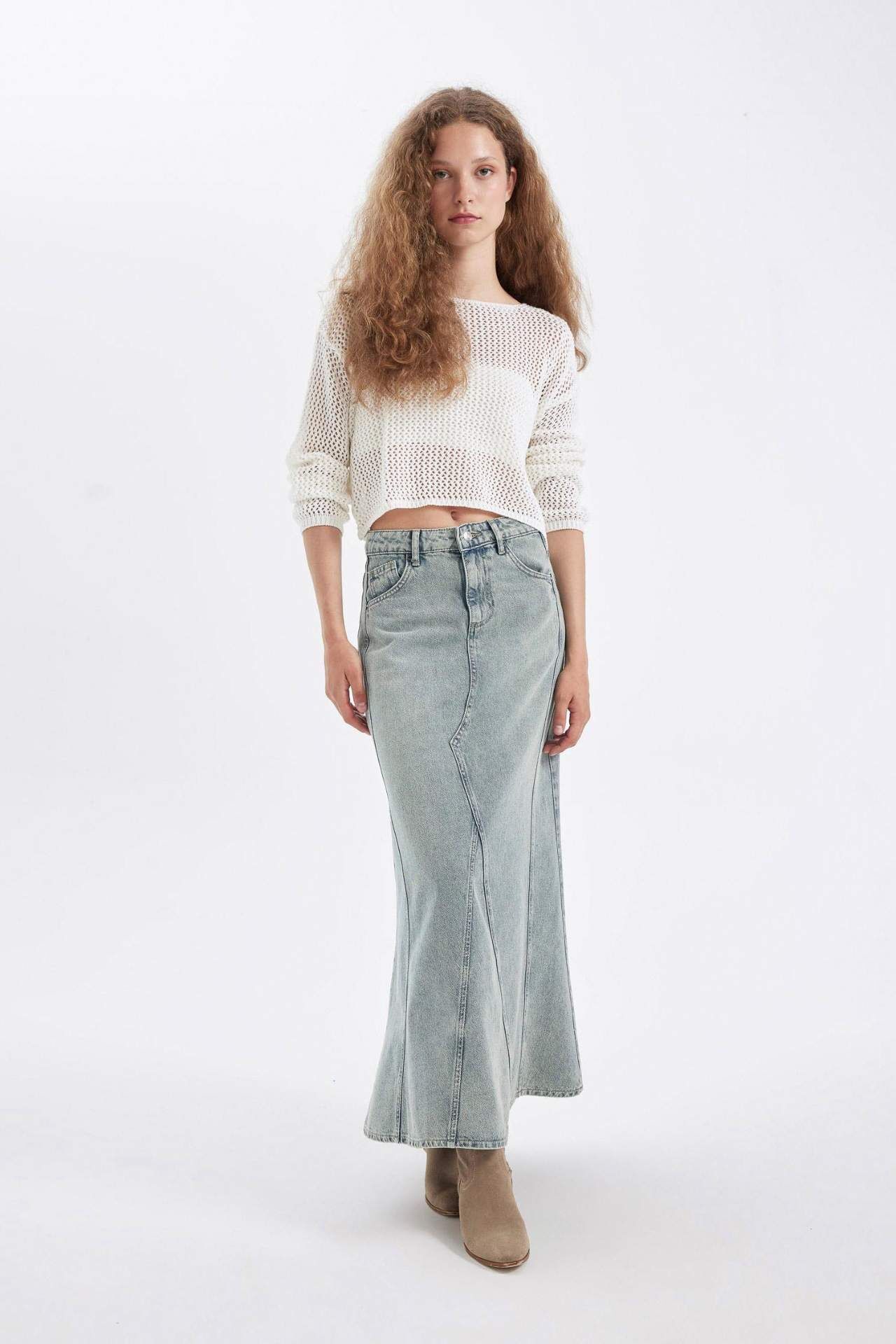 Şıklığınızı ön plana çıkaracak Fashion Fit Jean Maxi Etek ile tarzınızı konuşturun. Yüksek kaliteli kumaşı ve mükemmel kesimi ile her an şıklığınızı koruyun. Bu etek, gardırobunuzun vazgeçilmezi olmaya aday. Pamuk 100%,Pamuk 100% Manken Bedeni: Göğüs: 78 Boy: 1,74 Basen: 89 Bel: 60
