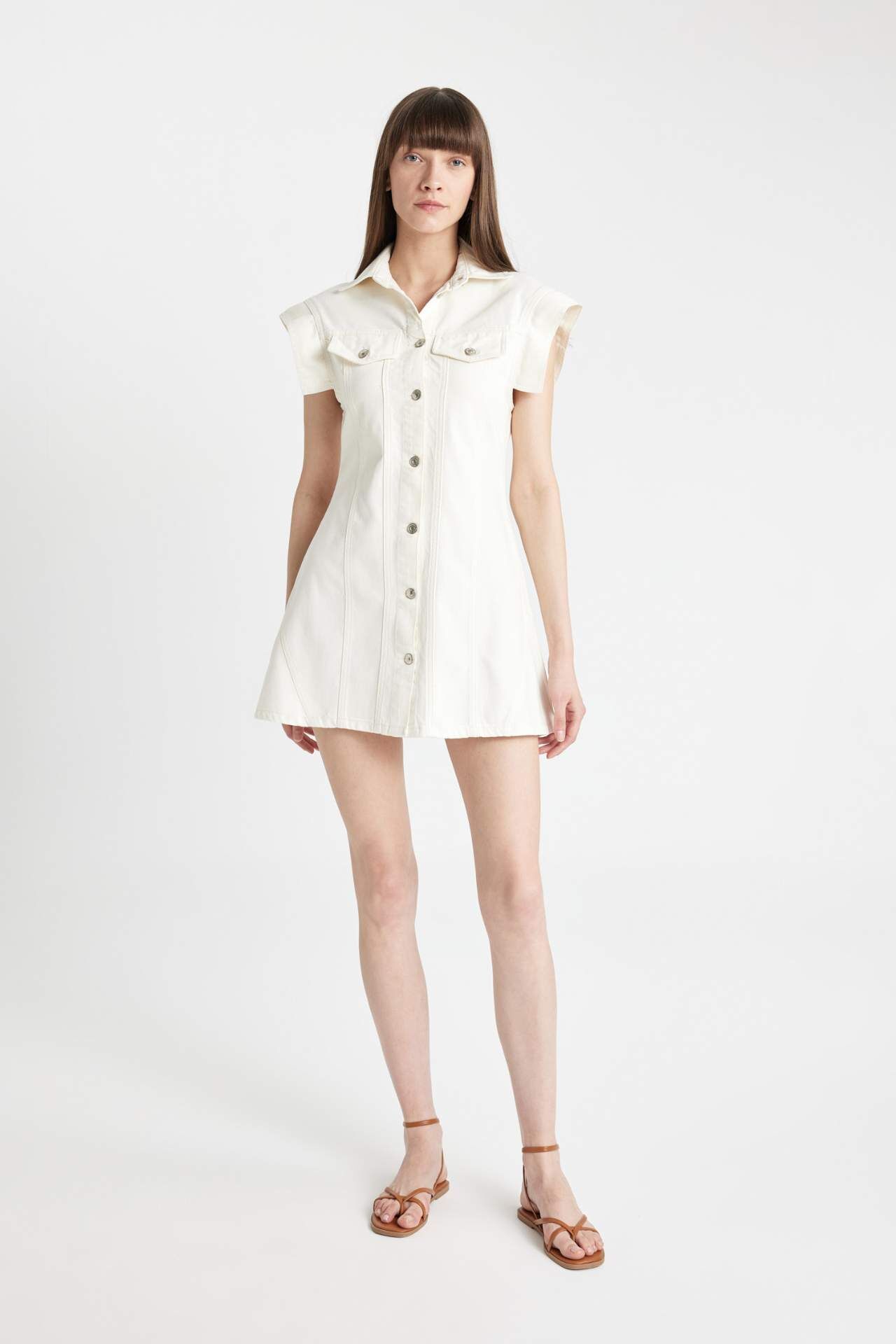 Fashion Fit Kolsuz Beyaz Mini Jean Elbise