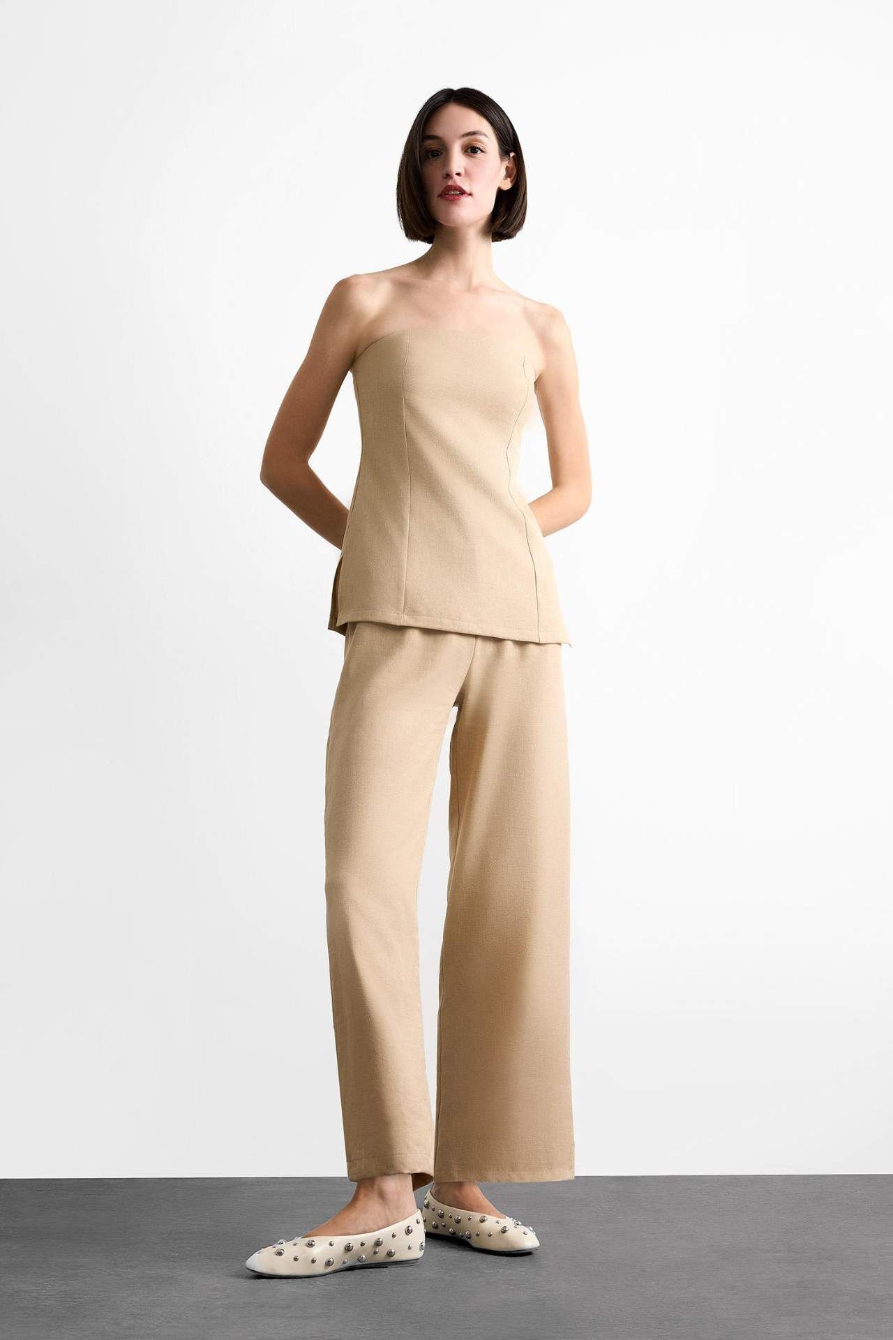 DeFacto Fermuarlı Yüksek Bel Kısa Paça Bilek Boy Keten Karışımlı Pantolon