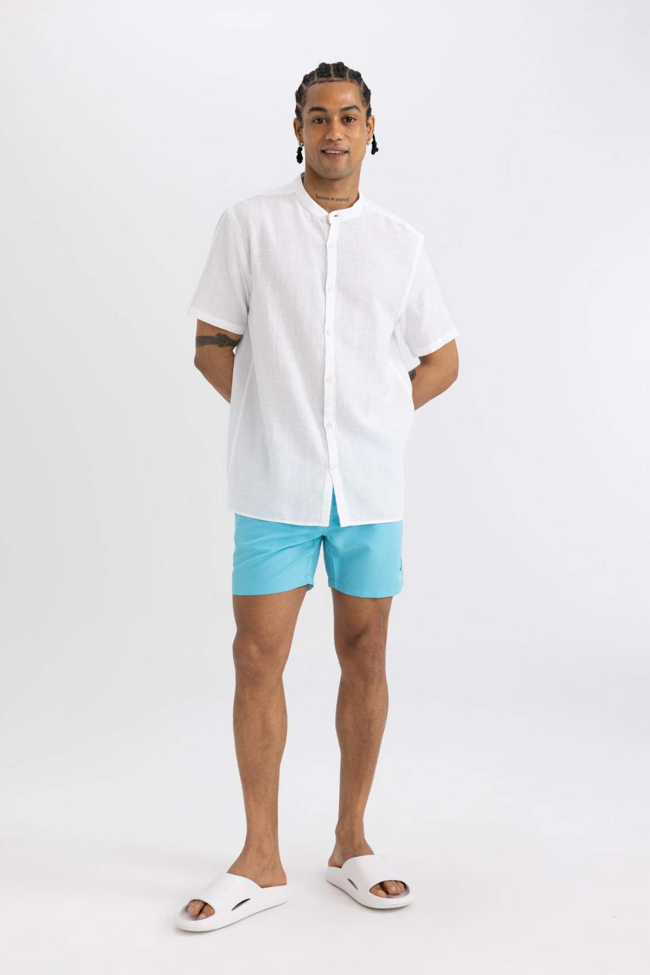 File Astarlı Kısa Boy Deniz Şortu: Yazın stilinizi tamamlayacak şık ve rahat bir seçenek. Deniz mavisi rengi ve yıldız desenleriyle dikkat çeken bu şort, plaj günlerinizde size eşlik edecek. Esnek kumaşı ve modern tasarımıyla konfor ve şıklığı bir arada sunuyor. Öne çıkan bir parça arıyorsanız, File Astarlı Kısa Boy Deniz Şortu tam size göre. Poliester 100%,Poliester 100%,Poliester 100%,Poliester 100% Manken Bedeni: Göğüs: 98 Boy: 1,87 Basen: 97 Bel: 78