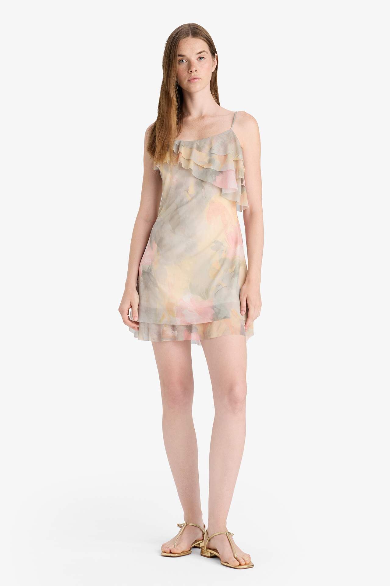 Romantik çiçek deseni ve fırfırlı yaka detayıyla öne çıkan tül askılı mini elbise, yaz davetlerine zarif bir dokunuş katıyor. Hafif yapısıyla gün boyu ferah ve şık bir görünüm sunar. Elastan 5%,Poliester 95%,Poliester 100%,Elastan 5%,Poliester 95%,Poliester 100%,Elastan 5%,Poliester 95%,Poliester 100%,Elastan 5%,Poliester 95%,Poliester 100%,Elastan 5%,Poliester 95%,Poliester 100%,Elastan 5%,Poliester 95%,Poliester 100% Manken Bedeni: Göğüs: 83 Boy: 1,78 Basen: 90 Bel: 61