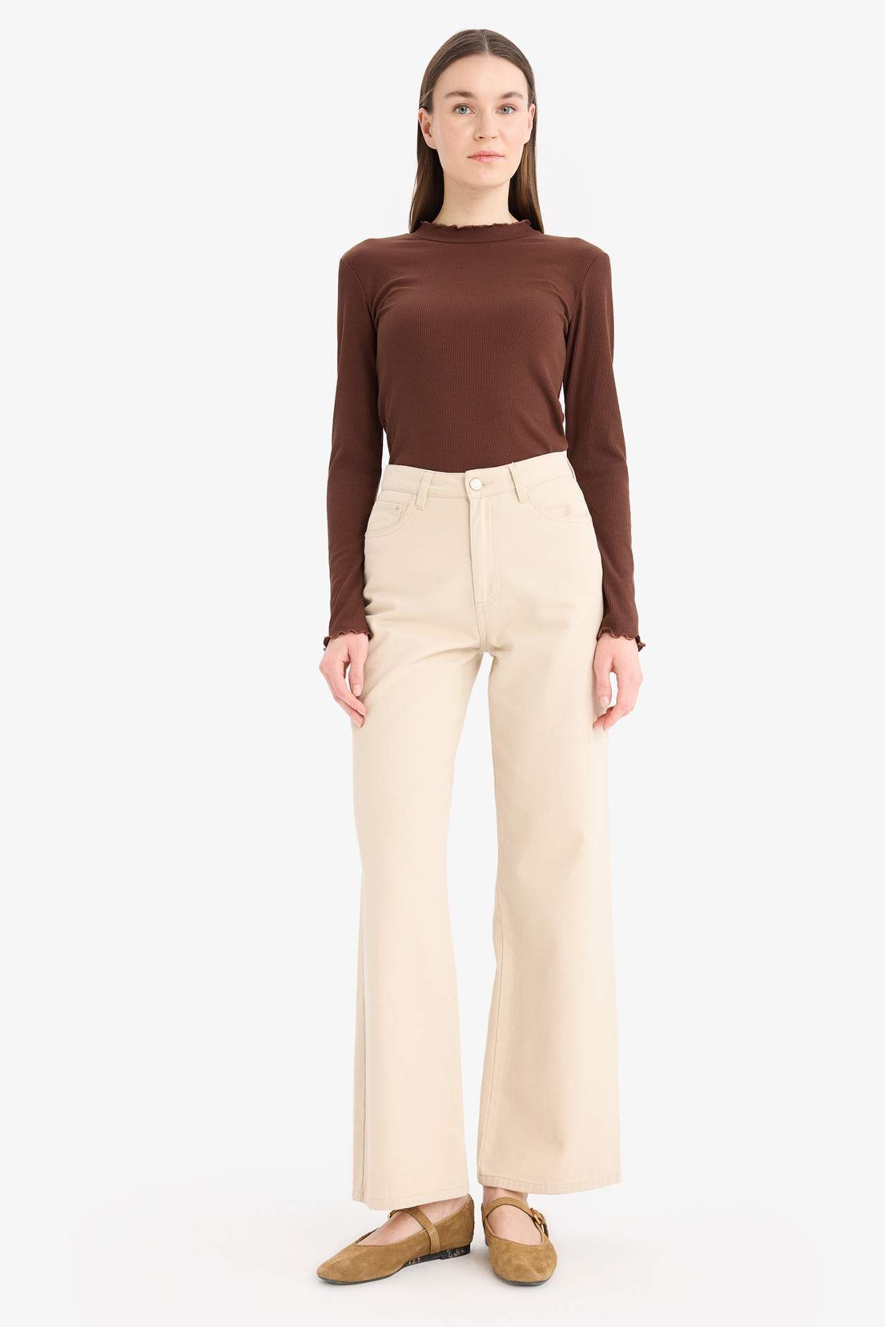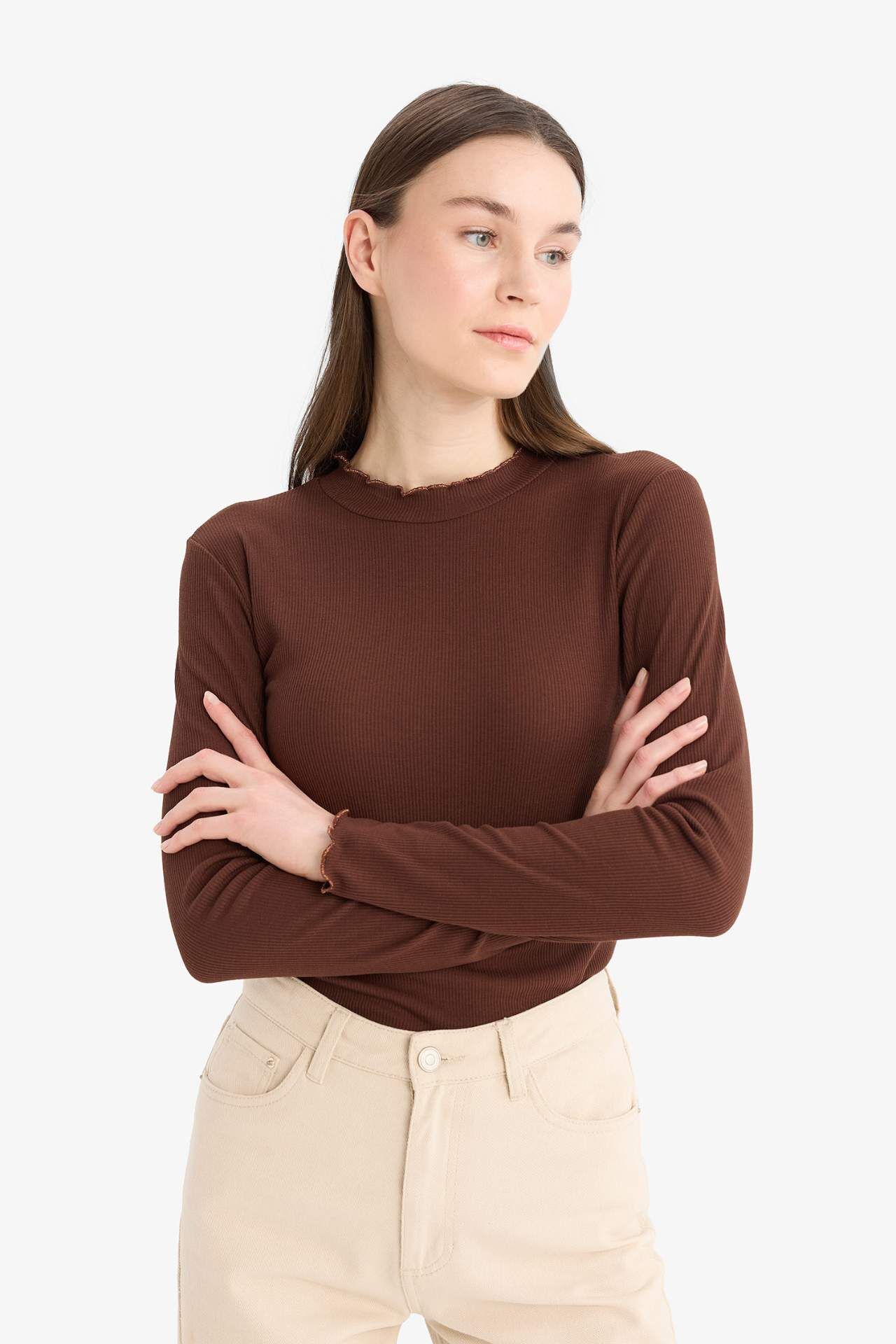 DeFacto Fitilli Kaşkorse Basic Düz Uzun Kollu Tişort