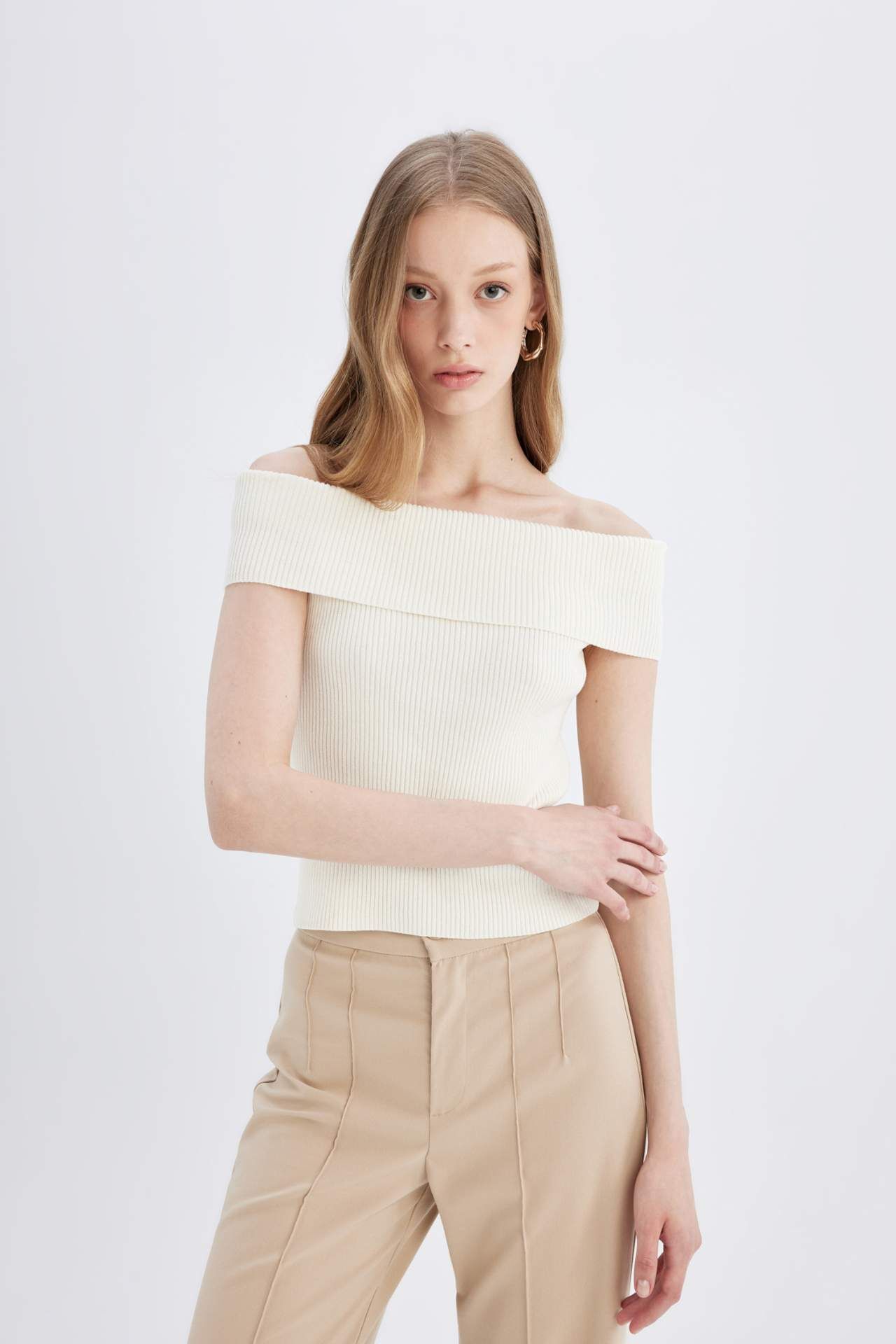 DeFactoFit Fitted Açık Omuz Ribana Kazak