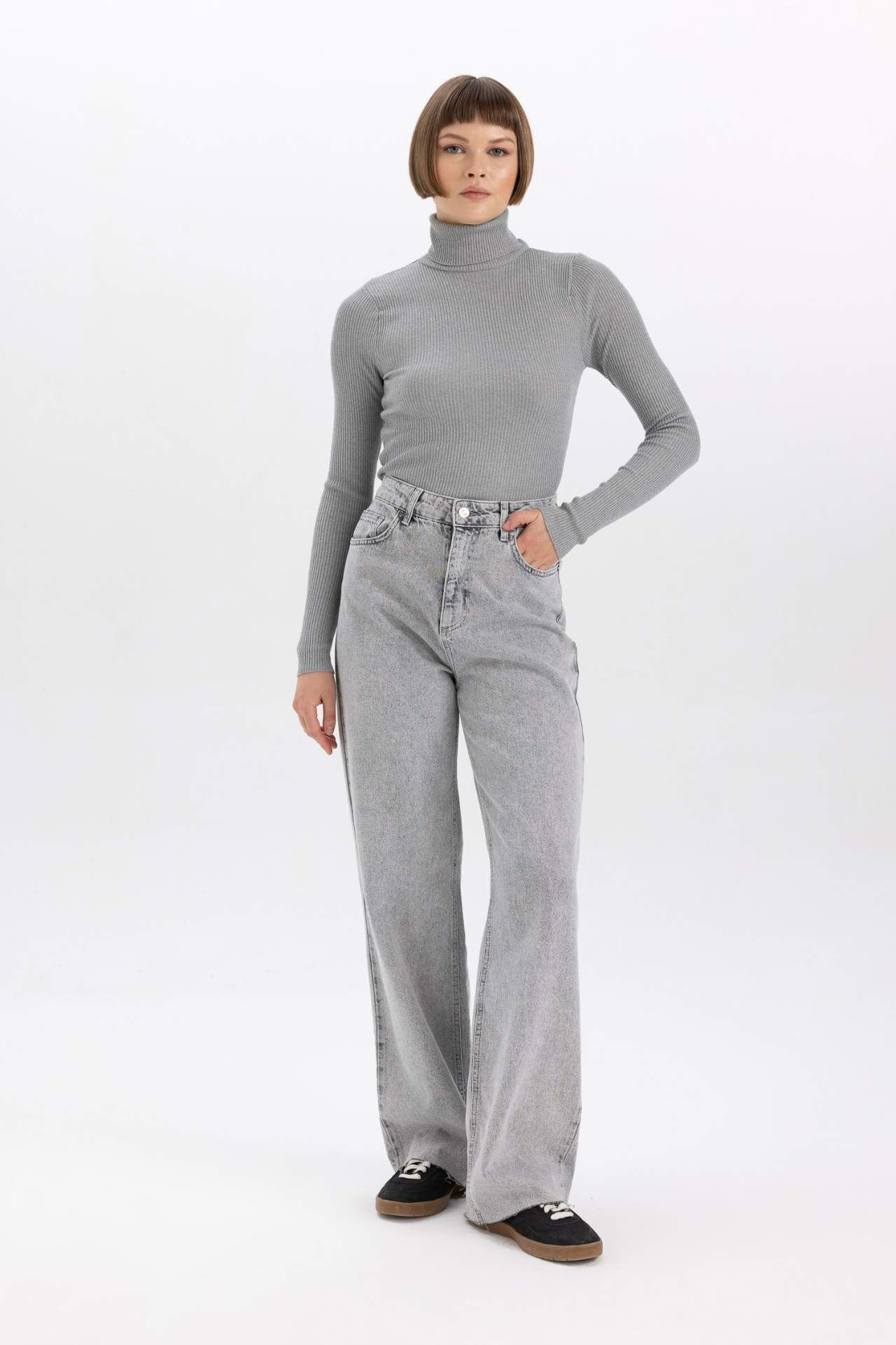 DeFacto Fitted Balıkçı Yaka Ribana Kazak