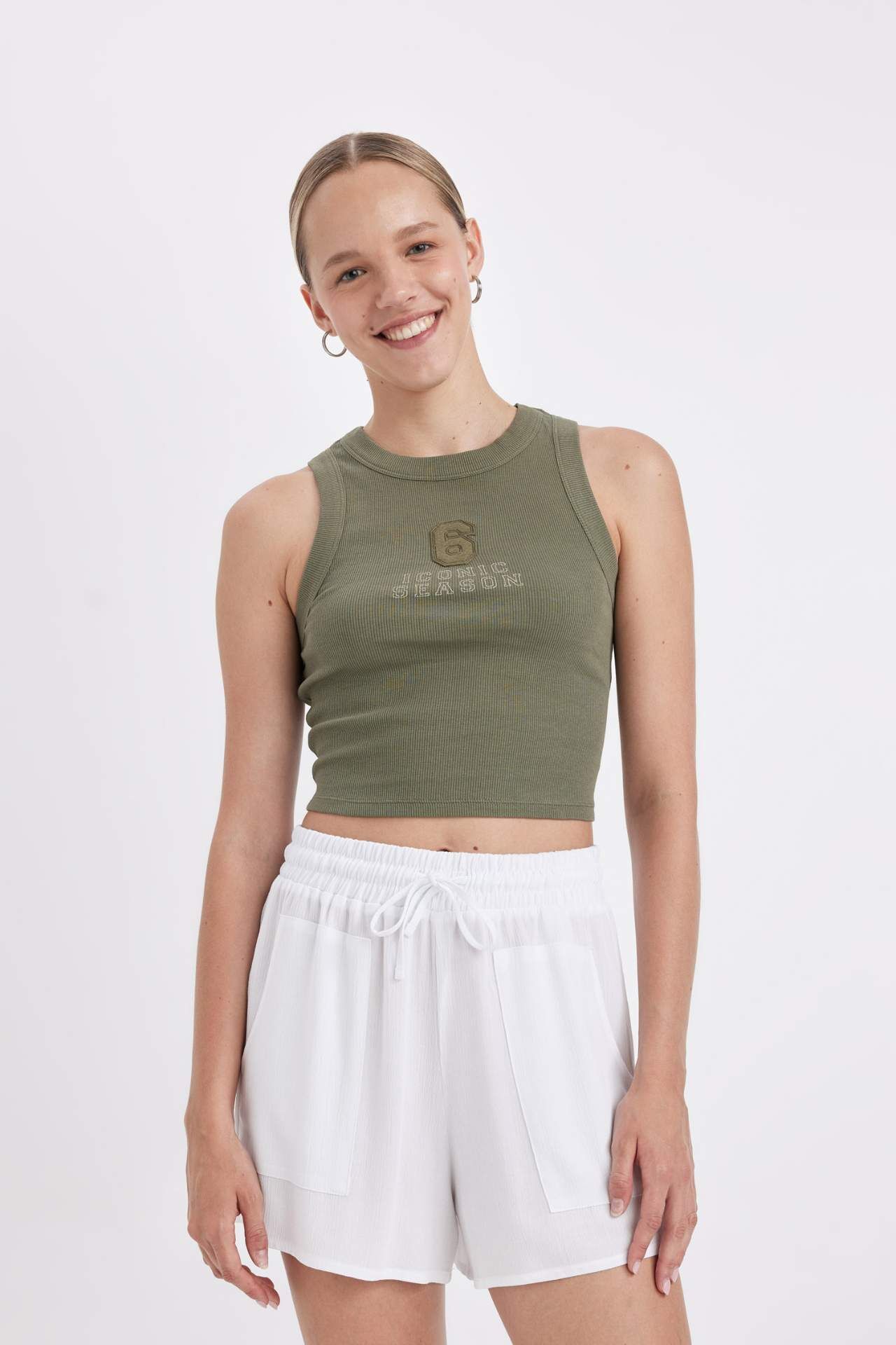 DeFacto DeFactoFit Fitted Baskılı Bisiklet Yaka Fitilli Kaşkorse Atlet D2159AX24HSKH82