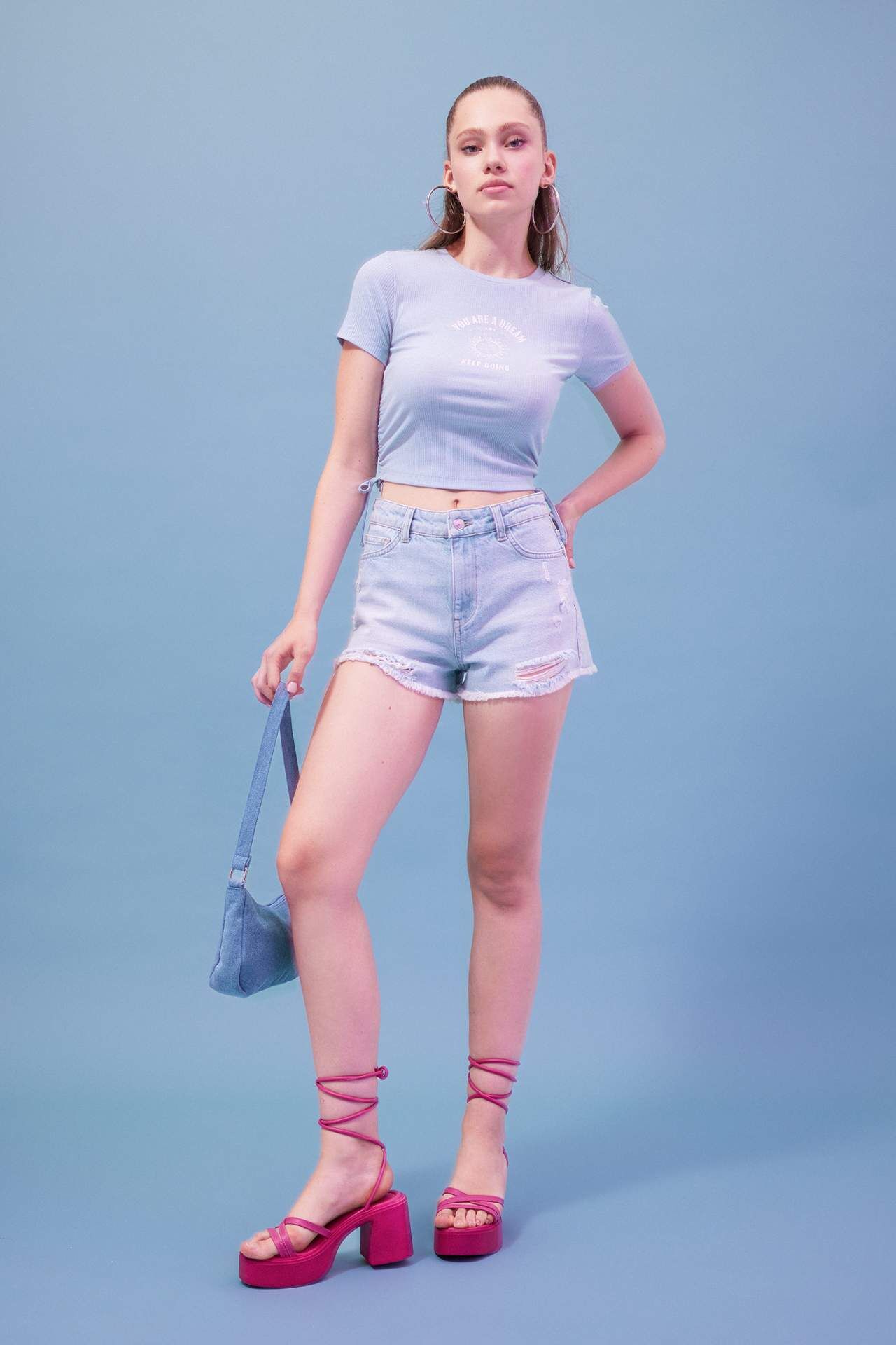 Baskılı, trend tasarımı, esnek dokulu kumaşı, yan büzülebilir bağcıklı, bisiklet yaka, kısa kollu modeli ile her mevsim gardırobunuzda bulunması gereken, blazer ceketlerinizin içinde şehirli ve havalı, basic kombinlerinizde sınırsız ve rahat hissedebileceğiniz her gün bir çok kombininize dahil edebileceğiniz kullanışlı rengiyle DeFacto Kadın Fitted Bisiklet Yaka Baskılı Kısa Kollu Tişört. Elastan 2%,Viskoz 31%,Poliester 67%,Elastan 2%,Viskoz 31%,Poliester 67%