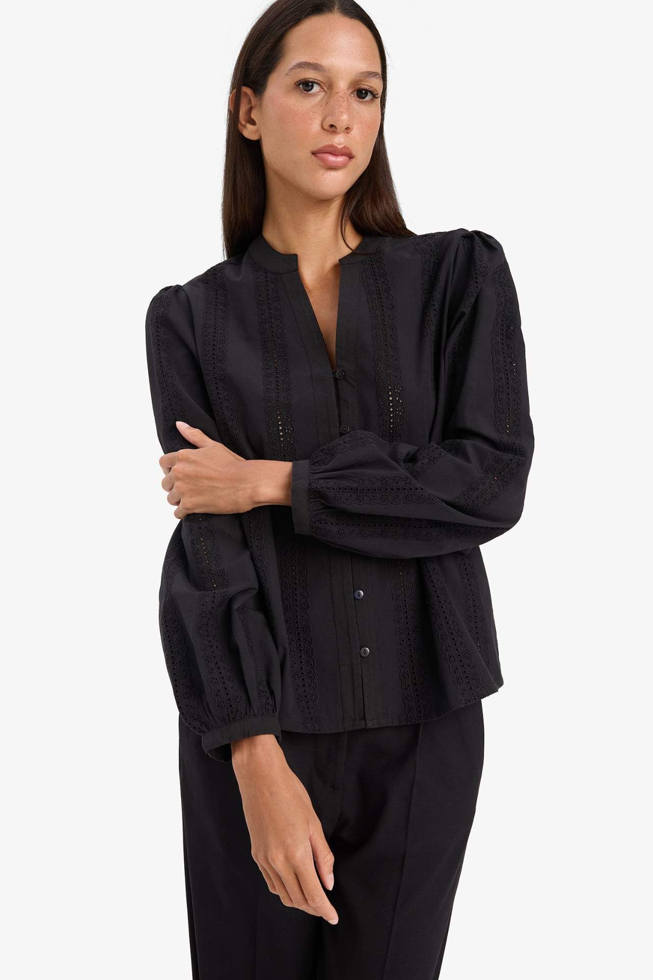 DeFacto Fitted Bisiklet Yaka Brode Uzun Kollu Gömlek E6531AX25AUBK27