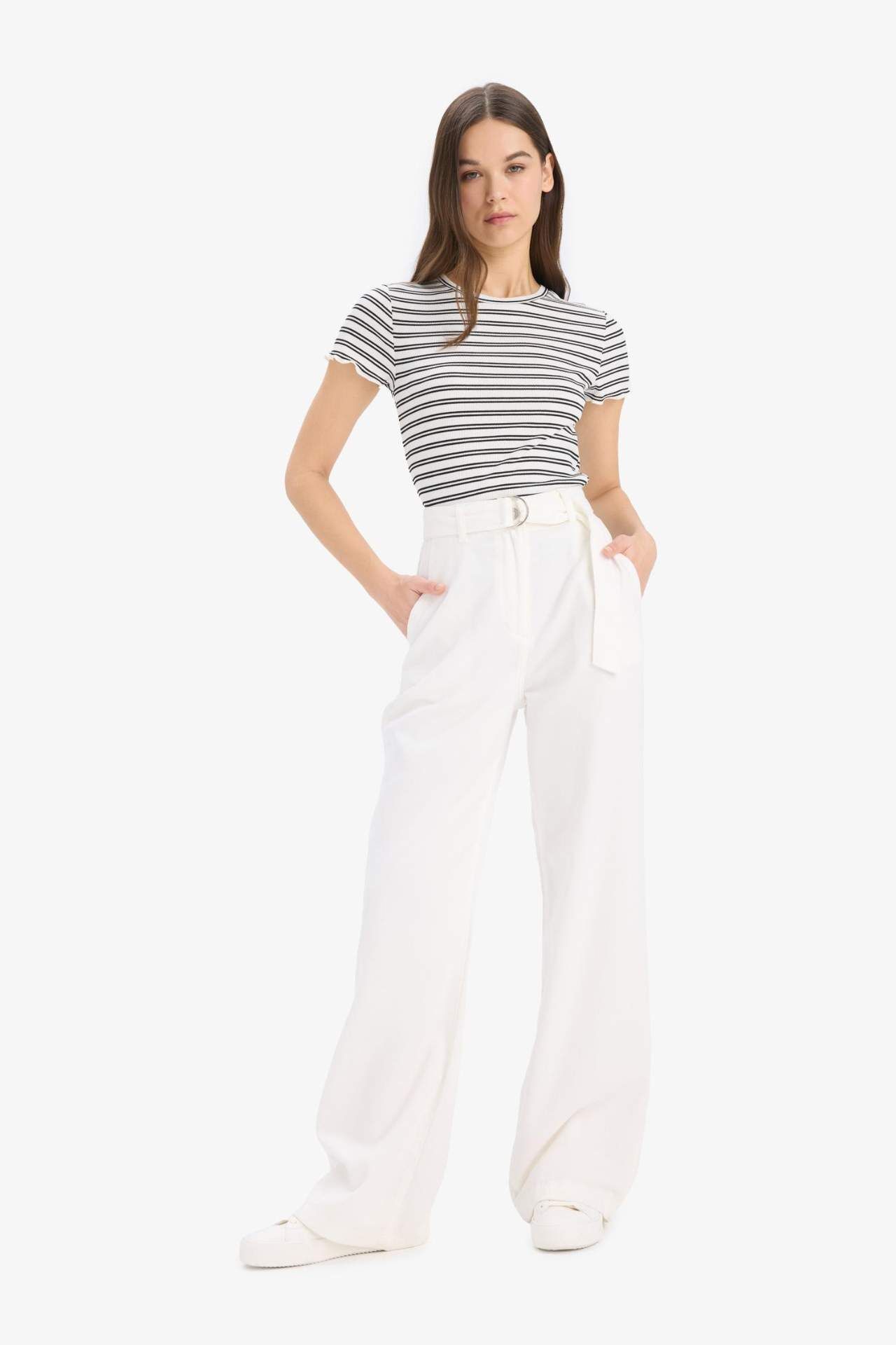 DeFacto Fitted Bisiklet Yaka Çizgili Fitilli Kaşkorse Kısa Kollu Tişört K1965AZ25SMWT34