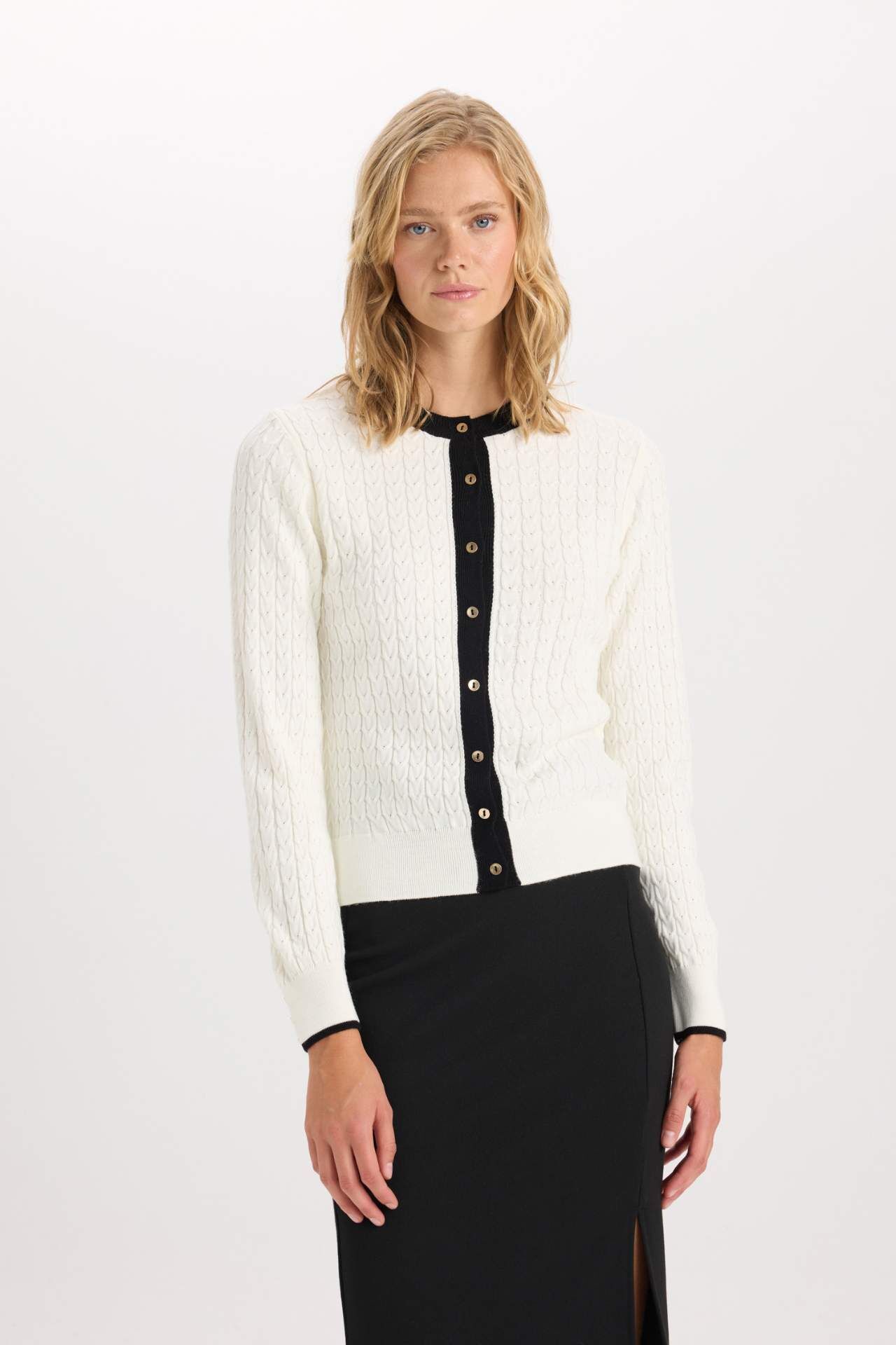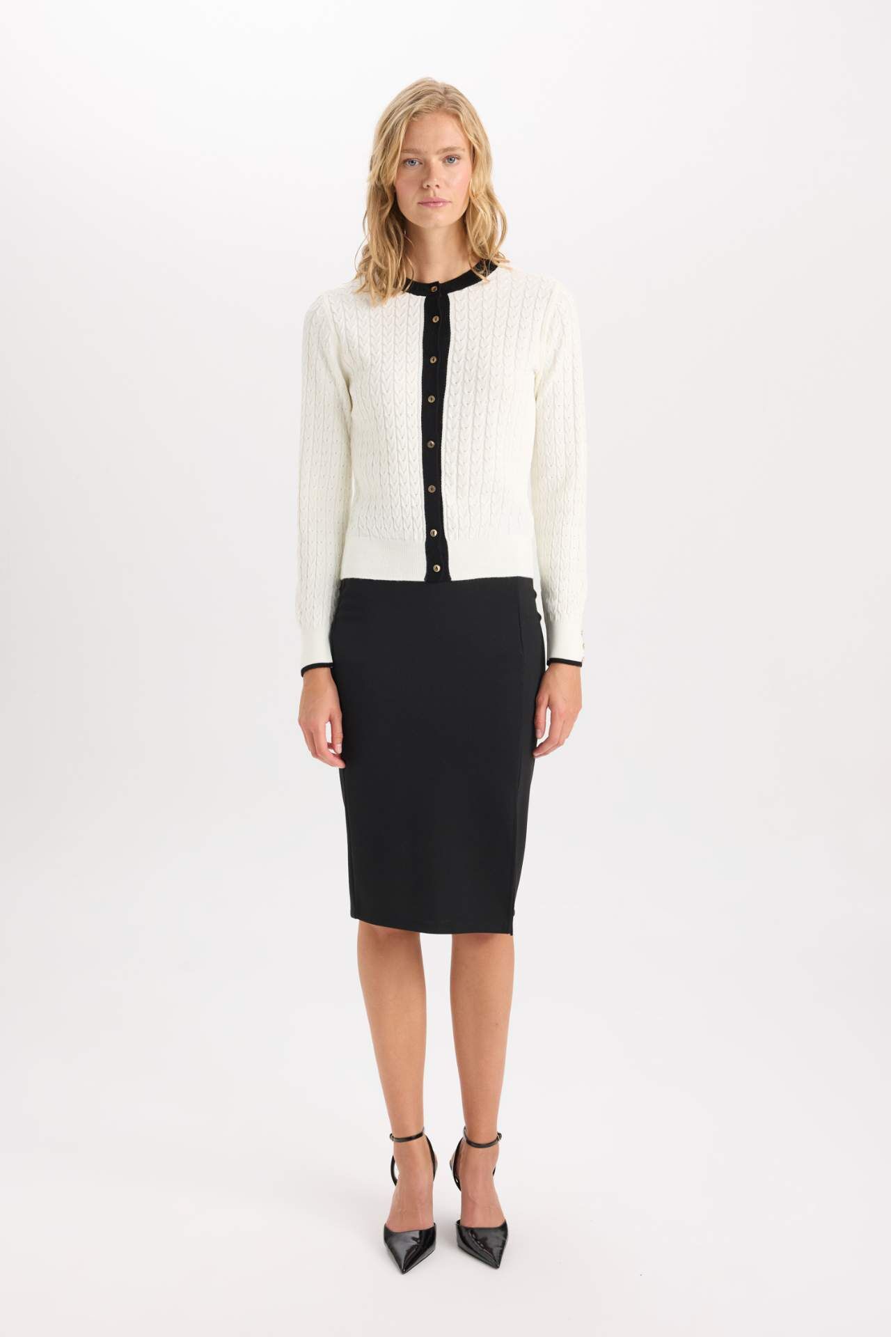 Fitted Bisiklet Yaka Düğme Kapamalı Basic Düz Triko Hırka