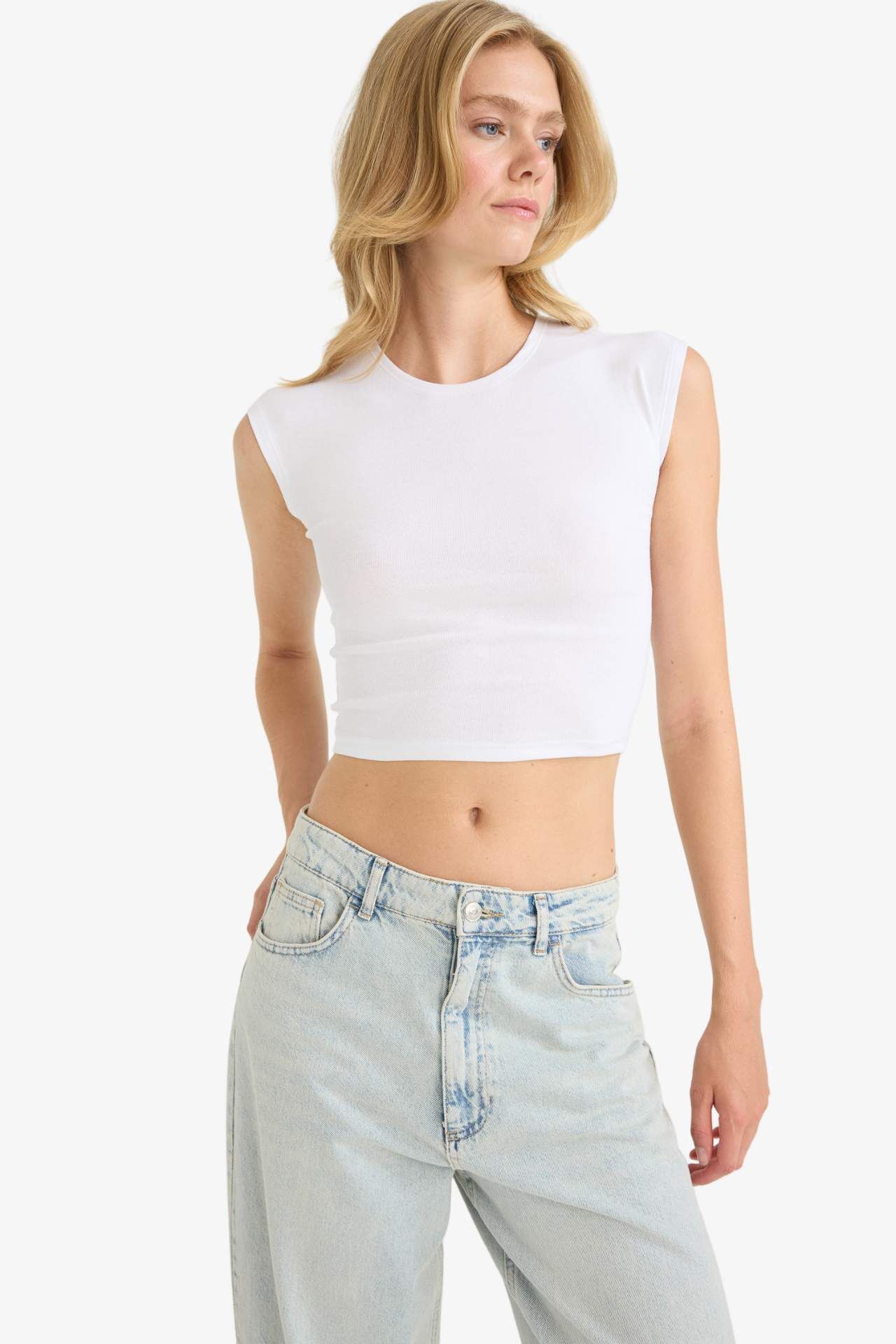 DeFacto Fitted Bisiklet Yaka Kısa Kollu Tişört G0273AX25SMWT34